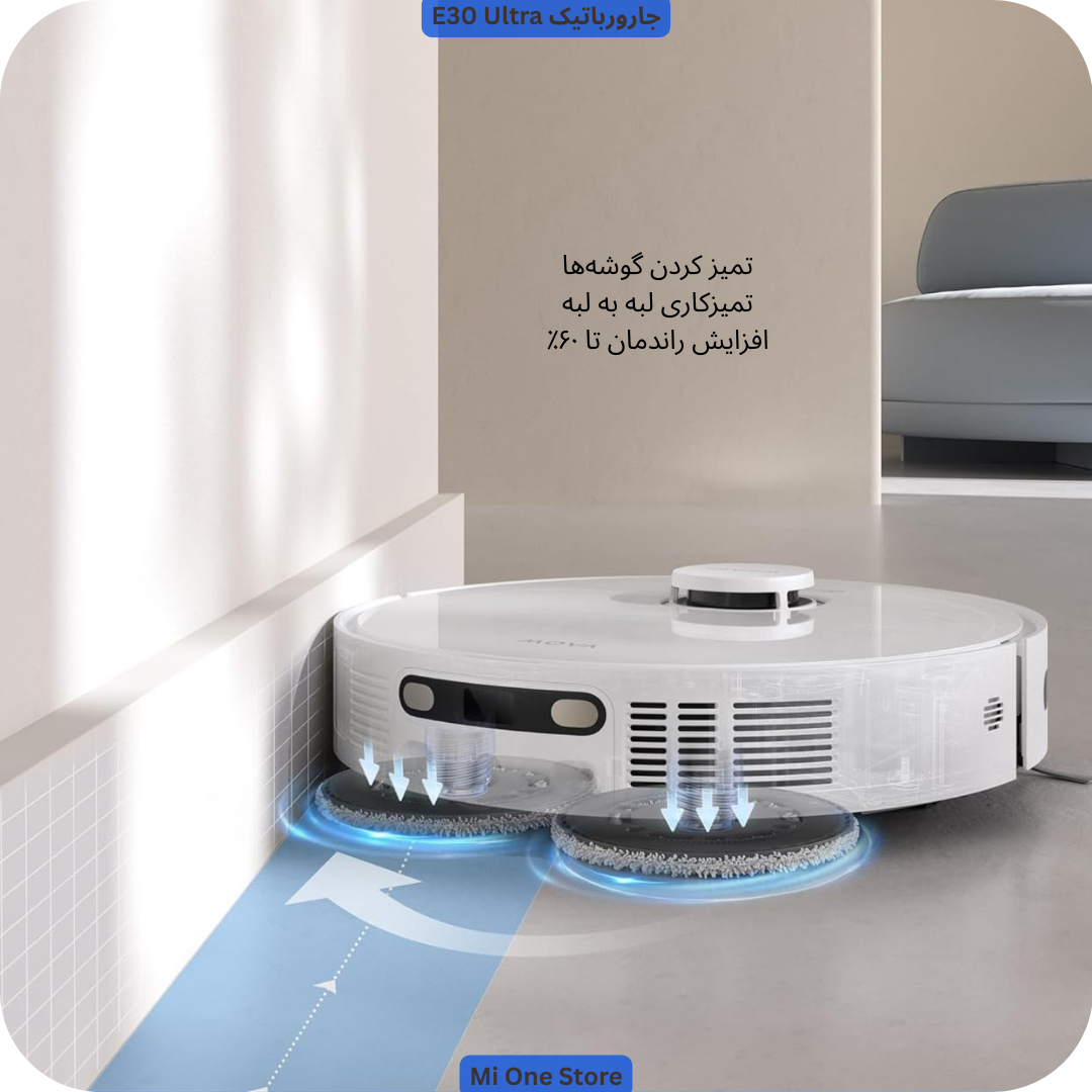 جارورباتیک مدل MOVA E30 Ultra Robot ترکیبی از قدرت، هوش و نظافت تماماتوماتیک است و مناسب افراد پرمشغله و خانههای بزرگ میباشد. جارورباتیک E30 Ultra با ترکیب فناوریهای هوشمند، مکش قدرتمند ۷۰۰۰ پاسکال، سیستم شستوشوی خودکار تی و قابلیت تخلیه اتوماتیک، تجربهای واقعی از نظافت بدون دخالت دست را ارائه میدهد. MOVA E30 Ultra Robot Vacuum دارای مسیریابی لیزری و مانعگریزی سهبعدی، عمر باتری فوقالعاده، کنترل هوشمند و صوتی است. ما استفاده از این جارورباتیک هوشمند را به ما توصیه میکنیم.