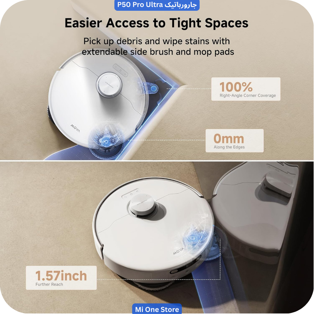 جارورباتیک مدل Mova P50 Pro Ultra نظافت خودکار کامل را برایتان فراهم میکند. یعنی پس از نصب اولیه و پر کردن مخزن آب/پاککننده، شما میتوانید هفتهها خانه را نظافت کنید بدون اینکه کیسه زباله یا پد تی را دستی خالی یا بشویید. جارورباتیک P50 Pro Ultra گزینهٔ قدرتمندی است این دستگاه نه فقط گرد و غبار و زبالهها را جارو میکند، بلکه تی میکشد، پد تی را شستوشو و خشک میکند و با حداقل دخالت شما، نظافت خانه را مدیریت میکند. Mova P50 Pro Ultra Robot Vacuum کنترل از طریق اپ و دستیار صوتی تلاش میکند بار نظافت خانه را تقریباً به صفر برساند. اگر به دنبال نظافتی بدون دردسر، پیوسته و کارآمد هستید، این مدل میتواند «تکمیل خانه هوشمند» شما باشد. ما استفاده از این جارورباتیک هوشمند را به شما پیشنهاد میکنیم.