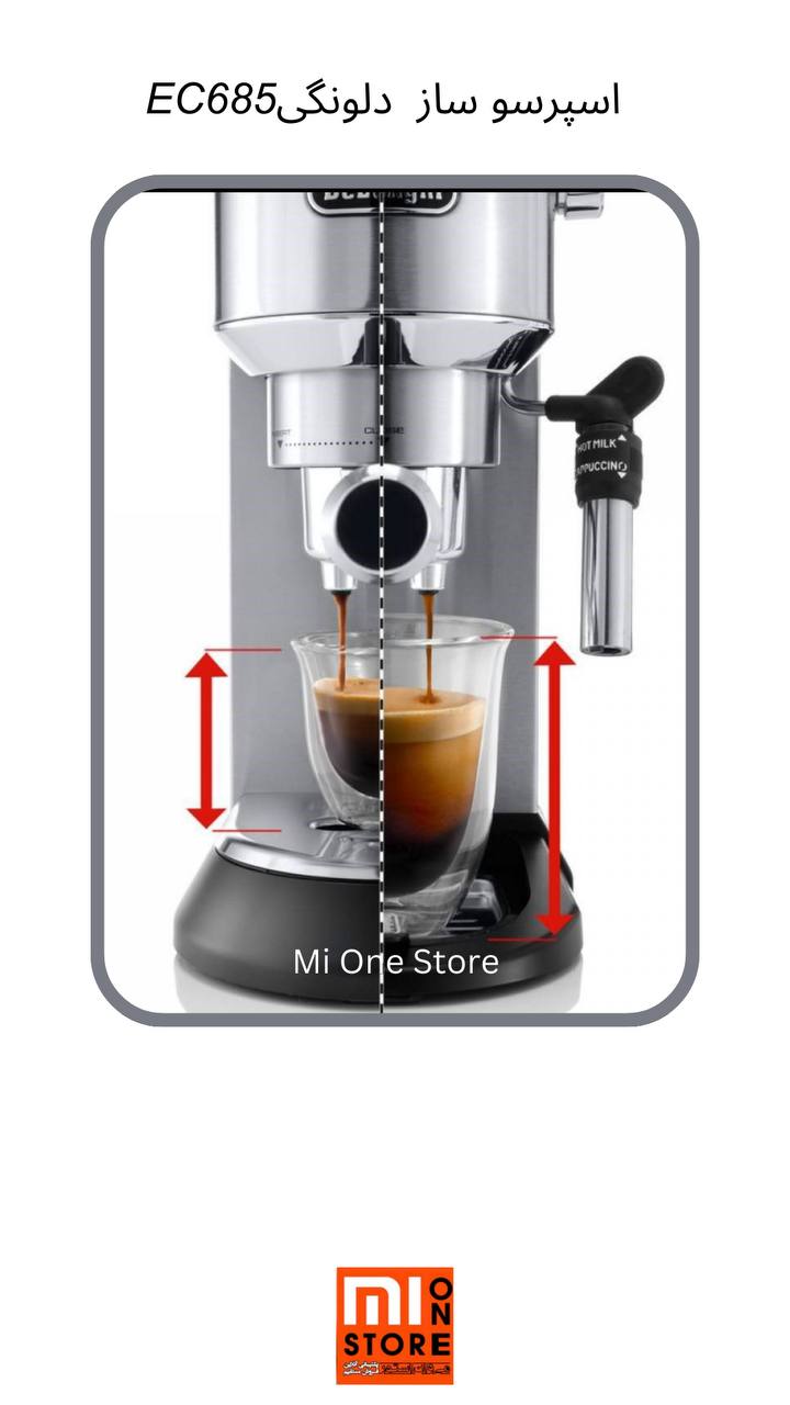 • اسپرسو ساز دلونگی مدل EC685 دارای قابلیت تنظیم ارتفاع فنجان هستند تا بتوانید از انواع فنجان‌های مختلف استفاده کنید.