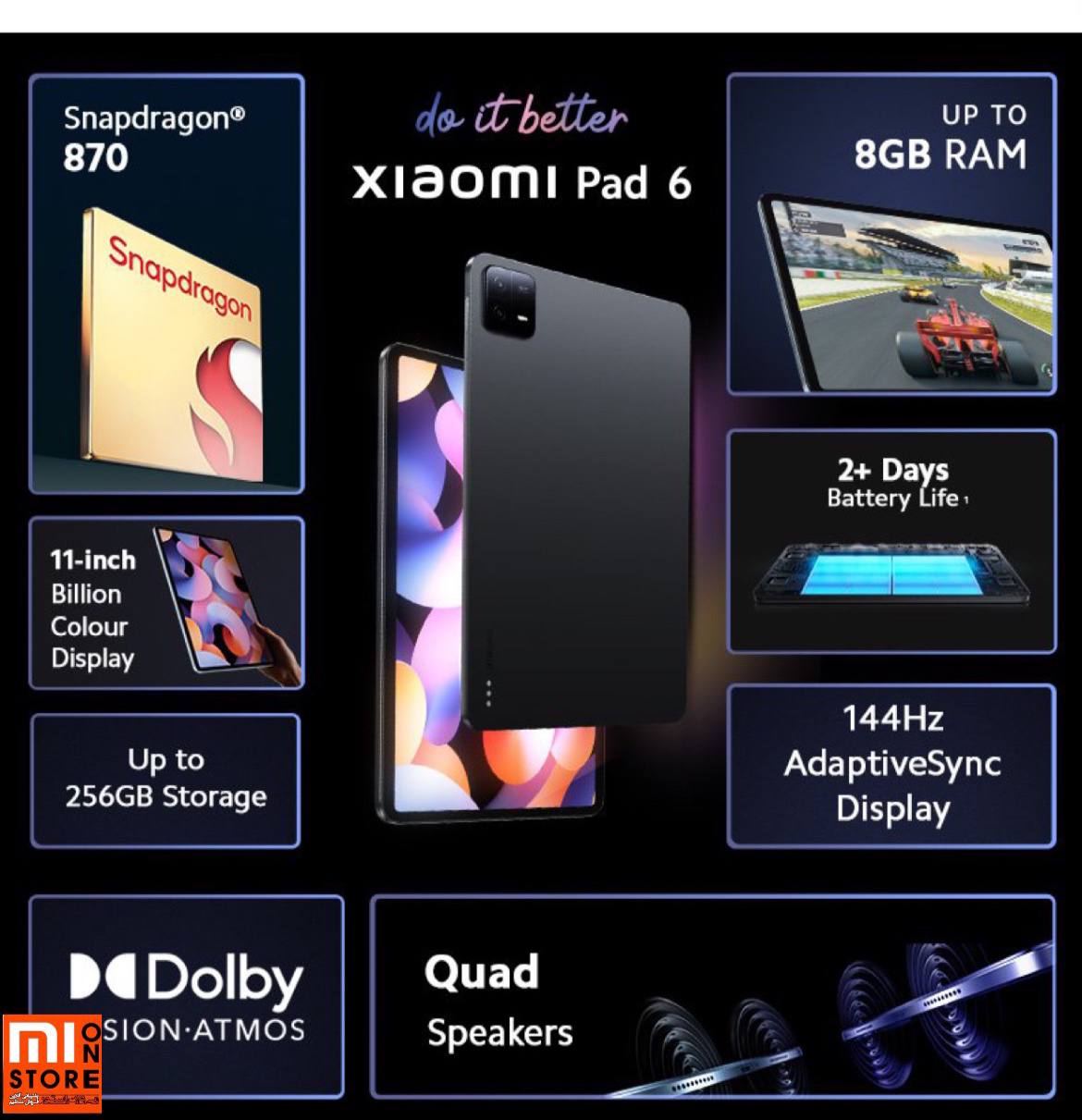 • این تبلت پد 6 دارای Snapdragon® 870 است که عملکرد پیشرو در کلاس شیائومی است.