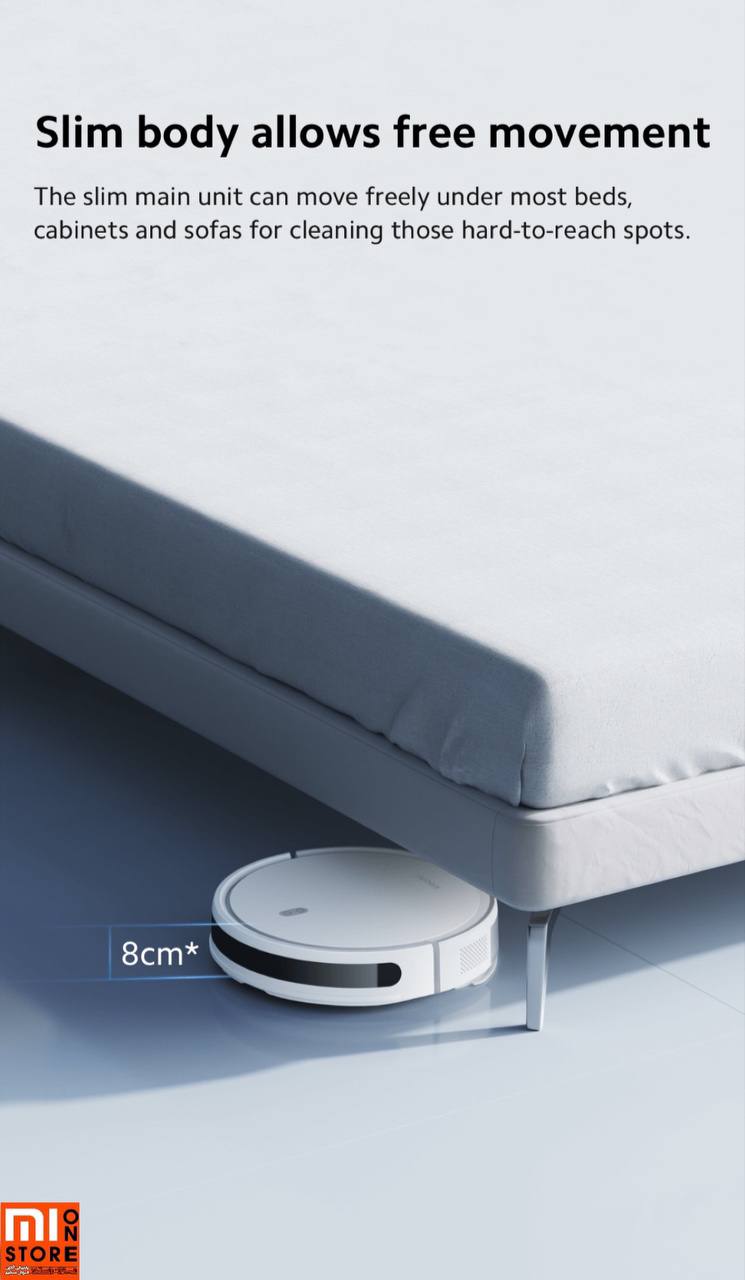 • این جارو رباتیک به ارتفاع 8 سانتی متر دارای بدنه باریک است به همین خاطر آزادانه می تواند حرکت کند در نتیجه به راحتی می تواند زیر اکثر تخت‌خواب‌ها، کابینت‌ها و مبل‌ها برود و برای تمیز کردن نقاطی که دسترسی به آن‌ها سخت است حرکت کند و خانه شما تمیز نماید.