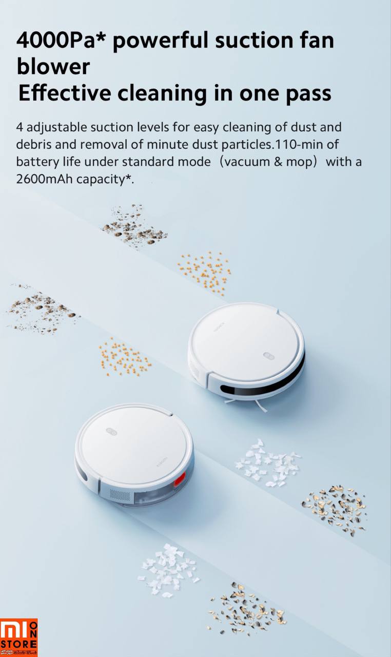 • جارو رباتیک E10 دارای مکش قدرتمند برابر با 4000 پاسکال می باشد.