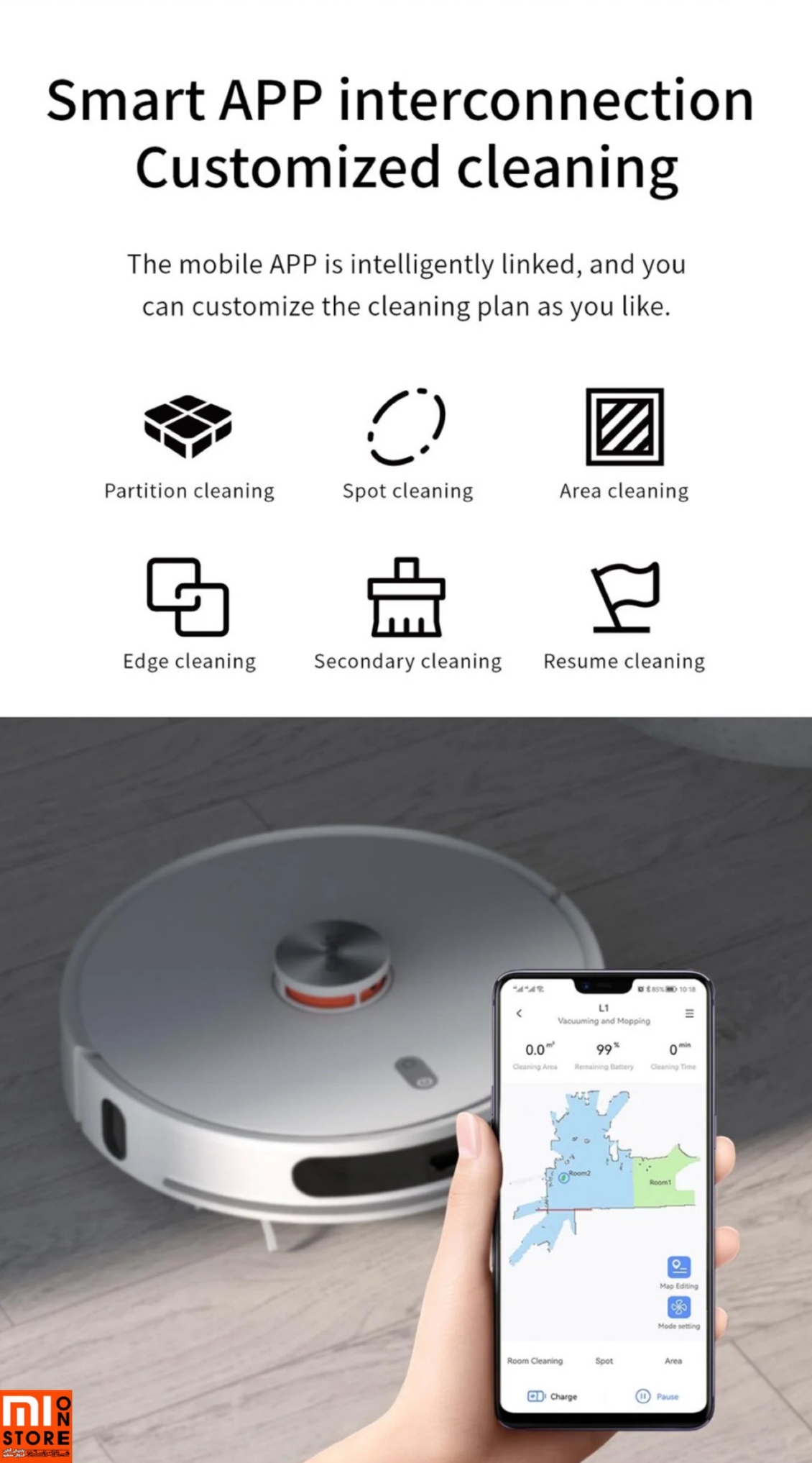 - این جارو رباتیک به شما امکان می دهد پارامترهای تمیز کردن را به صورت جداگانه برای هر اتاق و هر مکانی برنامه ریزی کنید.
