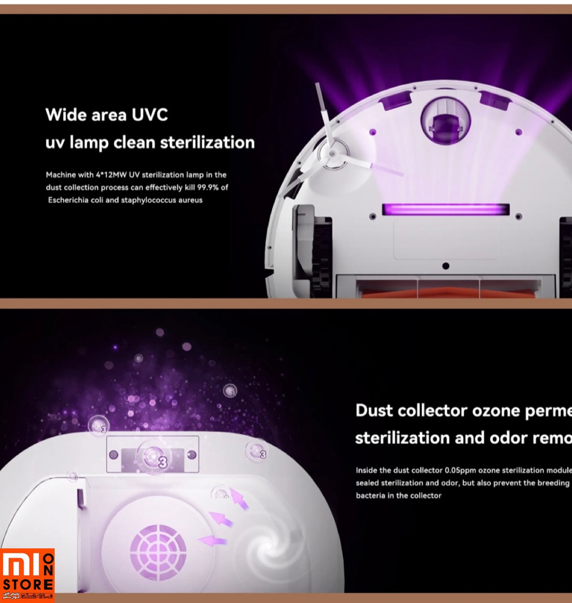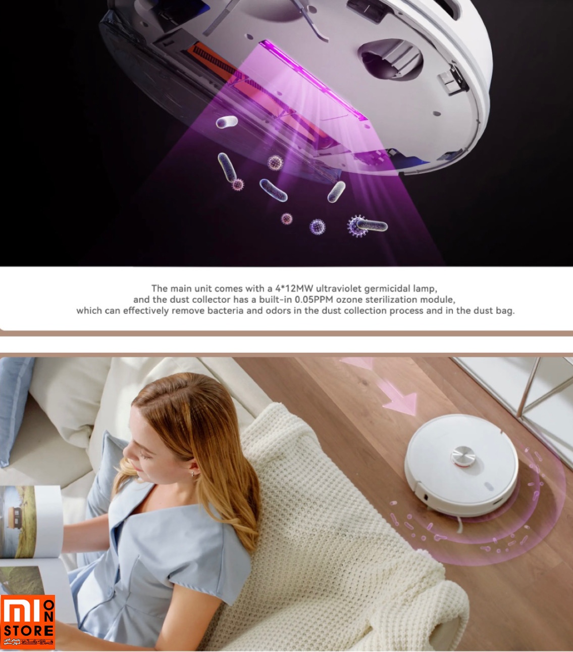 - در این Lydsto S1 در بالای برس اصلی یک لامپ ماوراء بنفش وجود دارد که برای ضدعفونی سطوح قرار گرفته است.