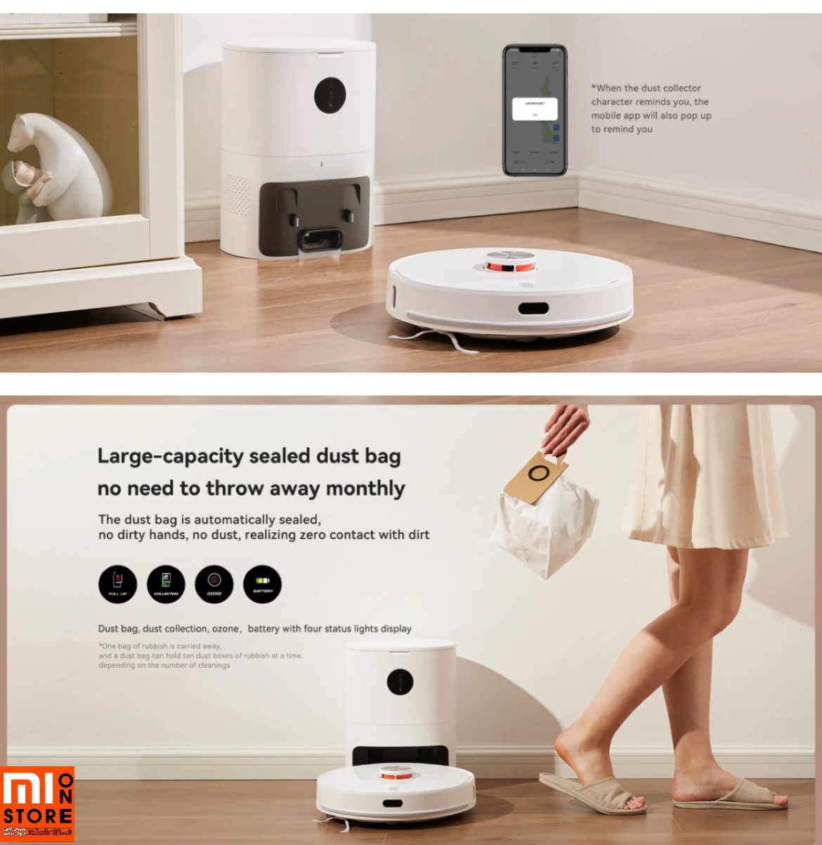 - خود ایستگاه جارو رباتیک Lydsto S1 دارای صفحه نمایشی است که شارژ باتری و وضعیت ربات را نشان می دهد