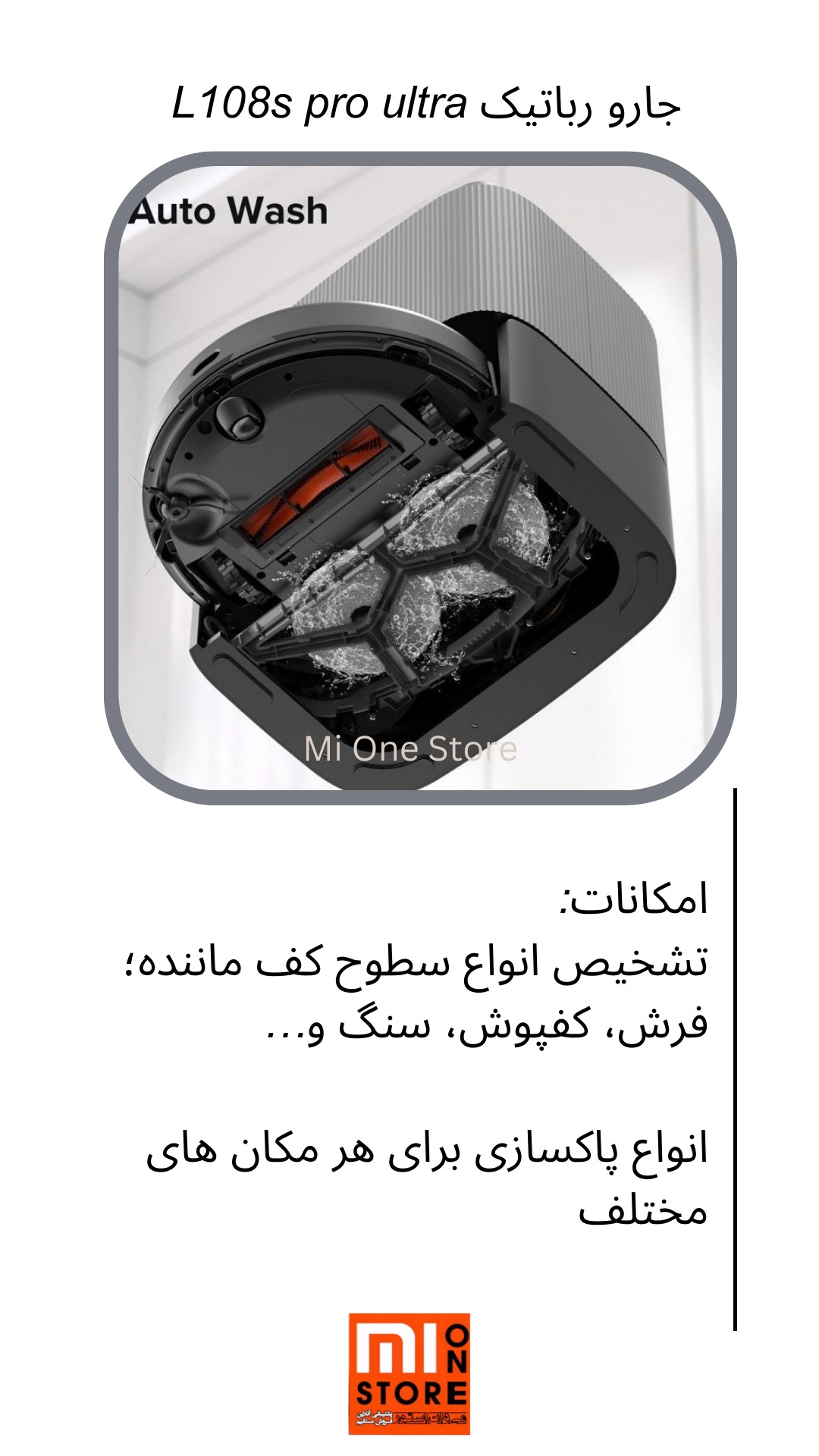 - Airbot L108S Pro Ultra دارای قابلیت شناسایی نوع سطح (فرش، کفپوش، سنگ و …) است و میتواند به طور خودکار به تنظیمات مناسب برای هر سطح بپردازد.