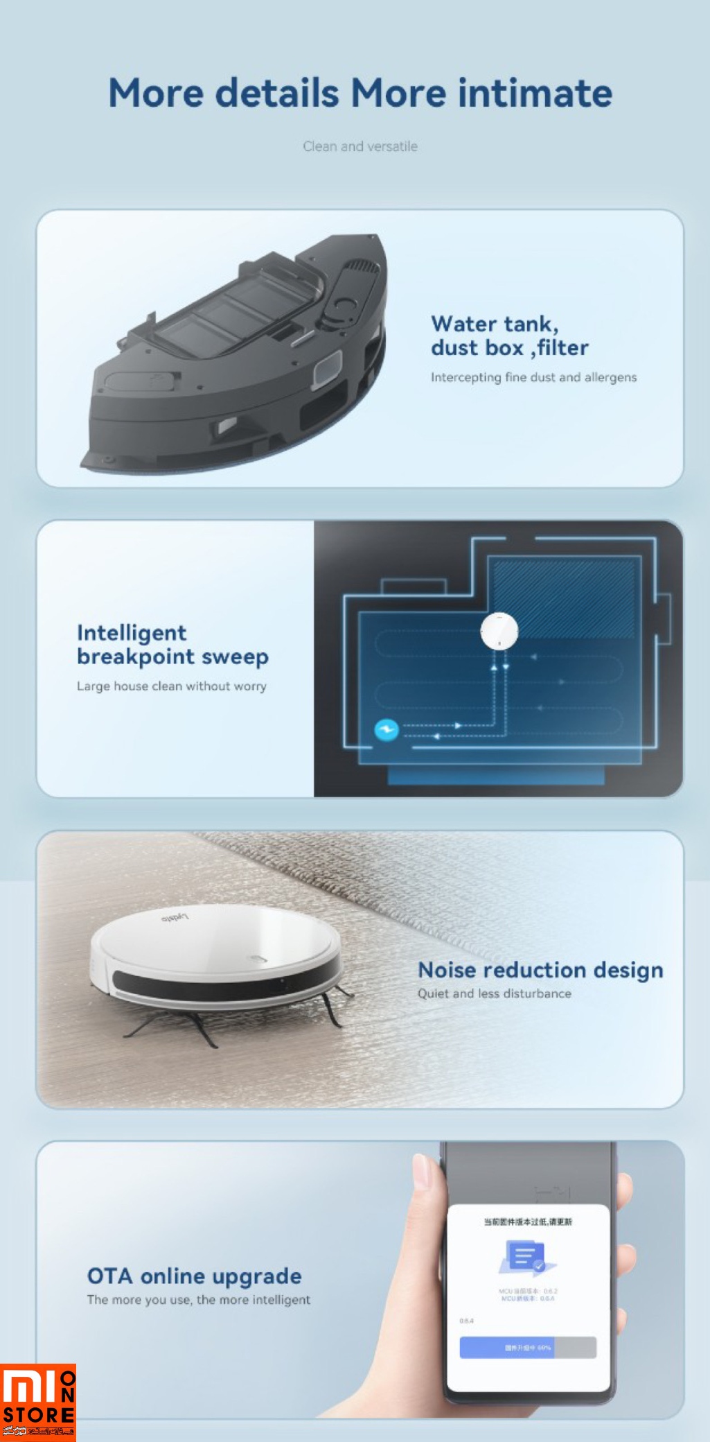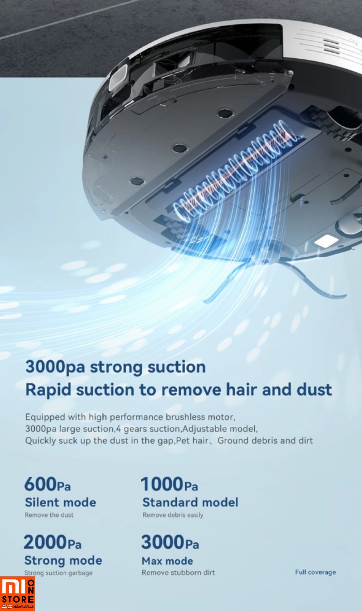 - این جارورباتیک Lydsto R3 دارای حداکثر قدرت مکش 3000 Pa می باشد، که در آلودگی های شدید مورد استفاده قرار می گیرد.