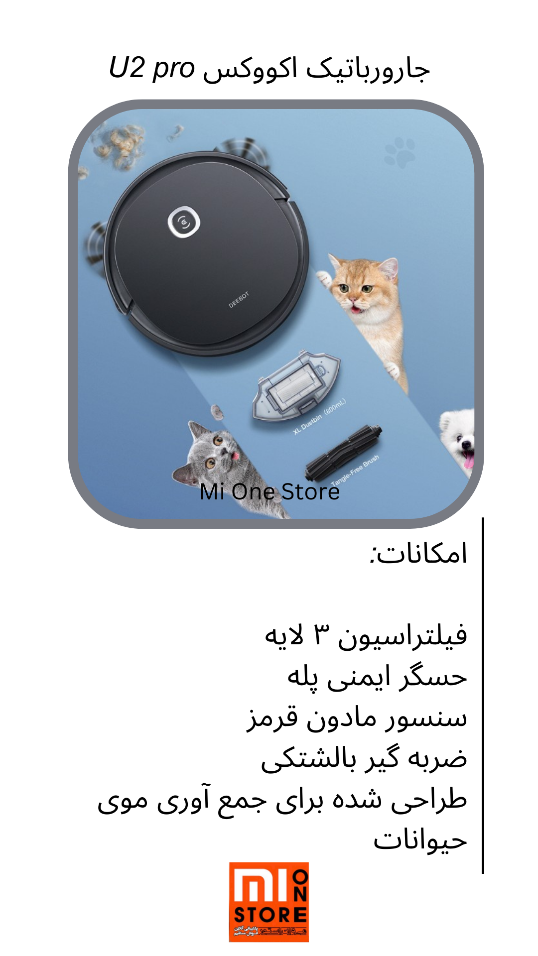- DEEBOT U2 PRO با یک کیت نوآورانه مراقبت از حیوانات خانگی ارائه می شود که به طور ویژه برای رسیدگی به موهای حیوانات خانگی، حتی در فصل ریزش طراحی شده است.