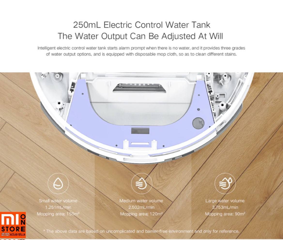 - R1 PRO دارای مخزن آب کنترلی 250 میلی لیتری است شما می توانید خروجی آب را به میل خودتان تنظیم نماید مخزن آب می تواند کنترل هوشمند برقی زنگ هشدار را در صورت عدم وجود آب راه اندازی کند، سه درجه گزینه خروجی آب را ارائه می دهد و مجهز به پارچه تمیز کننده یکبار مصرف است تا لکه های مختلف را تمیز نماید.