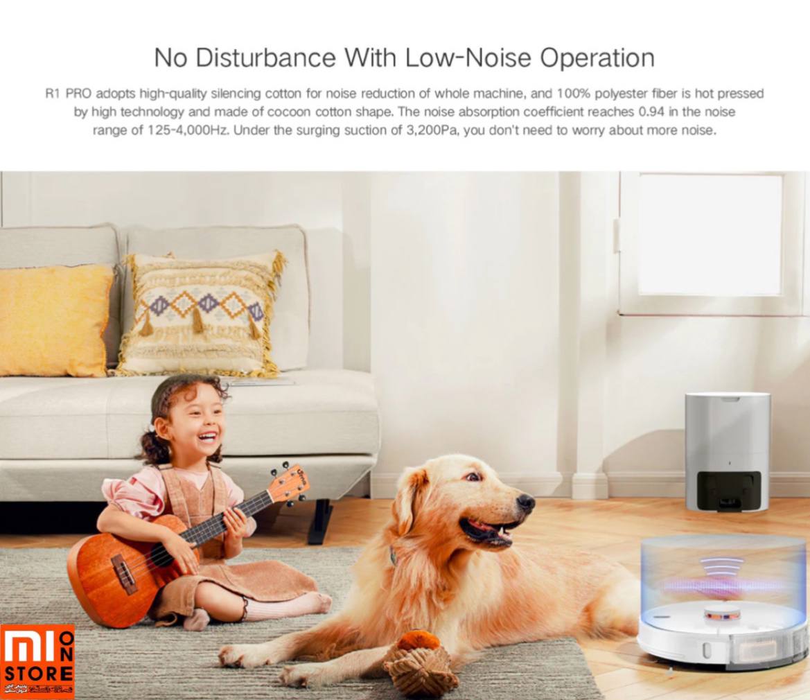 - این رباتR1 پرو دارای صدای کم هنگام تمیز کاری می باشد صدای این ربات در حدود 2.5 دسیبل است.