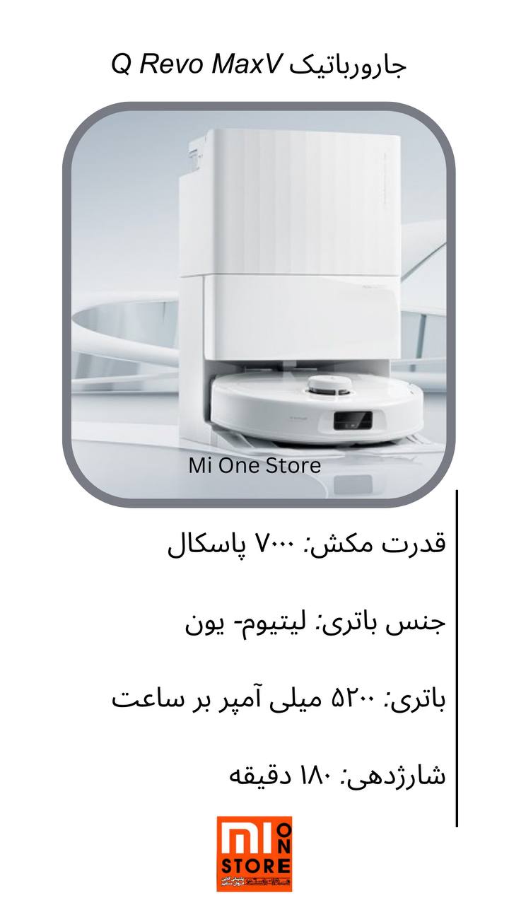 جارو رباتیک شیائومی مدل Q Revo MaxV دارای طراحی ظاهری به شکل یک دیسک مسطح و بسیار باریک می باشد. جارو رباتیک Q Revo MaxV می تواند به طور همزمان جاروبرقی و تمیز کاری کند تا کثیفی‌های ریز که ممکن است جاروبرقی به تنهایی از بین نبرد را پاک نماید. Roborock Q Revo MaxV Robot Vacuum دارای یک سامانه سنسورهای هوشمند برای شناسایی موانع و اجسام در مسیر خود است. این ربات دستگاه هوشمند داخلی و یک دستیار صوتی فوق العاده ایی دارد. ما استفاده از این جارو رباتیک را به شما پیشنهاد می کنیم.