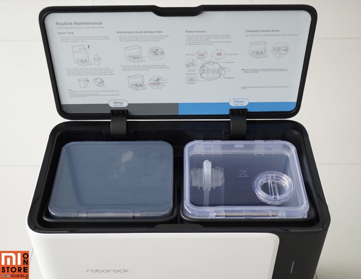 - این جارو رباتیک دارای یک مخزن 2.5 لیتری برای آب کثیف و یک مخزن 2.9 لیتری برای آب تمیز دارد.