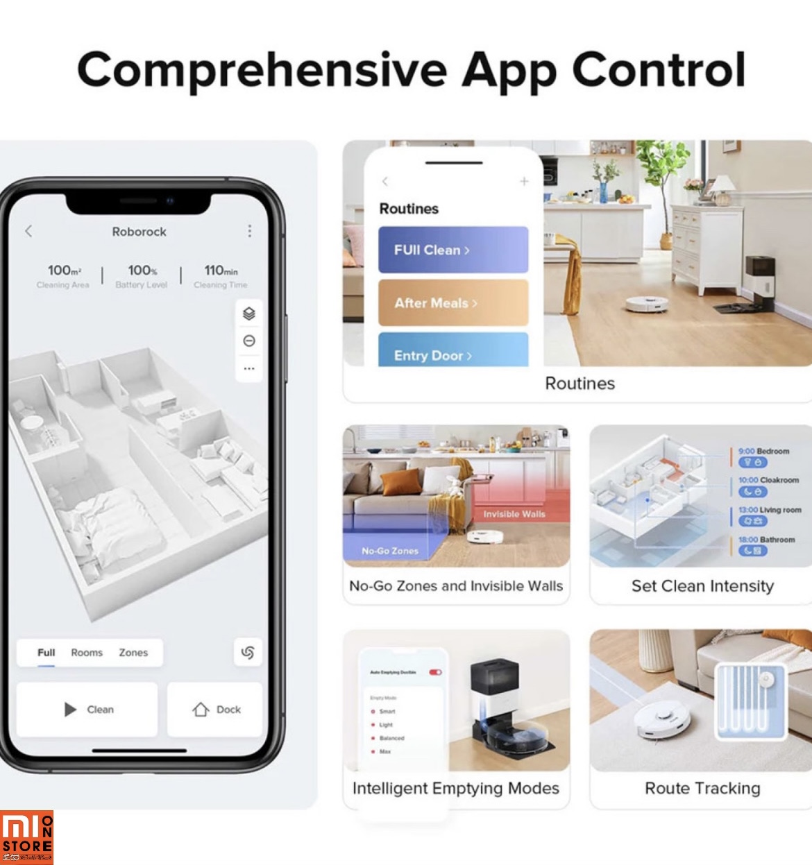 - جارو رباتیک شیائومی مدل Roborock Q7 Plus شما می توانید برنامه منظمی به این ربات بدهید که در چه روزی و چه ساعتی خانه و یا محل کار شما را تمیز نماید و شما به آسودگی به کارهای دیگرتان بپردازید.