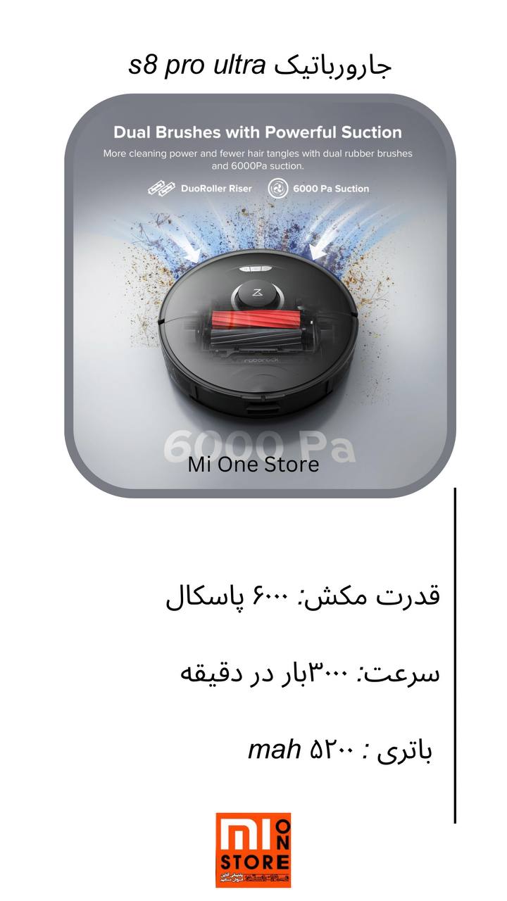 جارو رباتیک S8 Pro Ultra دارای مکش قدرتمند 6000 پاسکال می باشد که می تواند به راحتی زباله ها، موها، گرد و غبار و موارد دیگر را با سرعت بیشتری از کف و فرش های سخت خانه یا محل کار شما جمع کند.