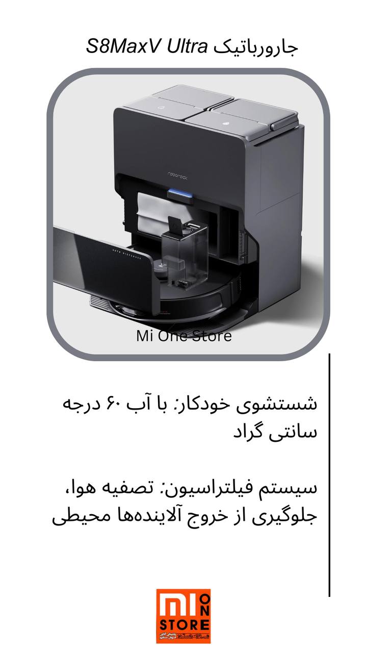 روبوراک مدل S8MaxV Ultra دارای سیستم فیلتراسیون پیشرفته است که به تصفیه هوا و جلوگیری از خروج آلاینده‌های محیطی کمک می‌کند.