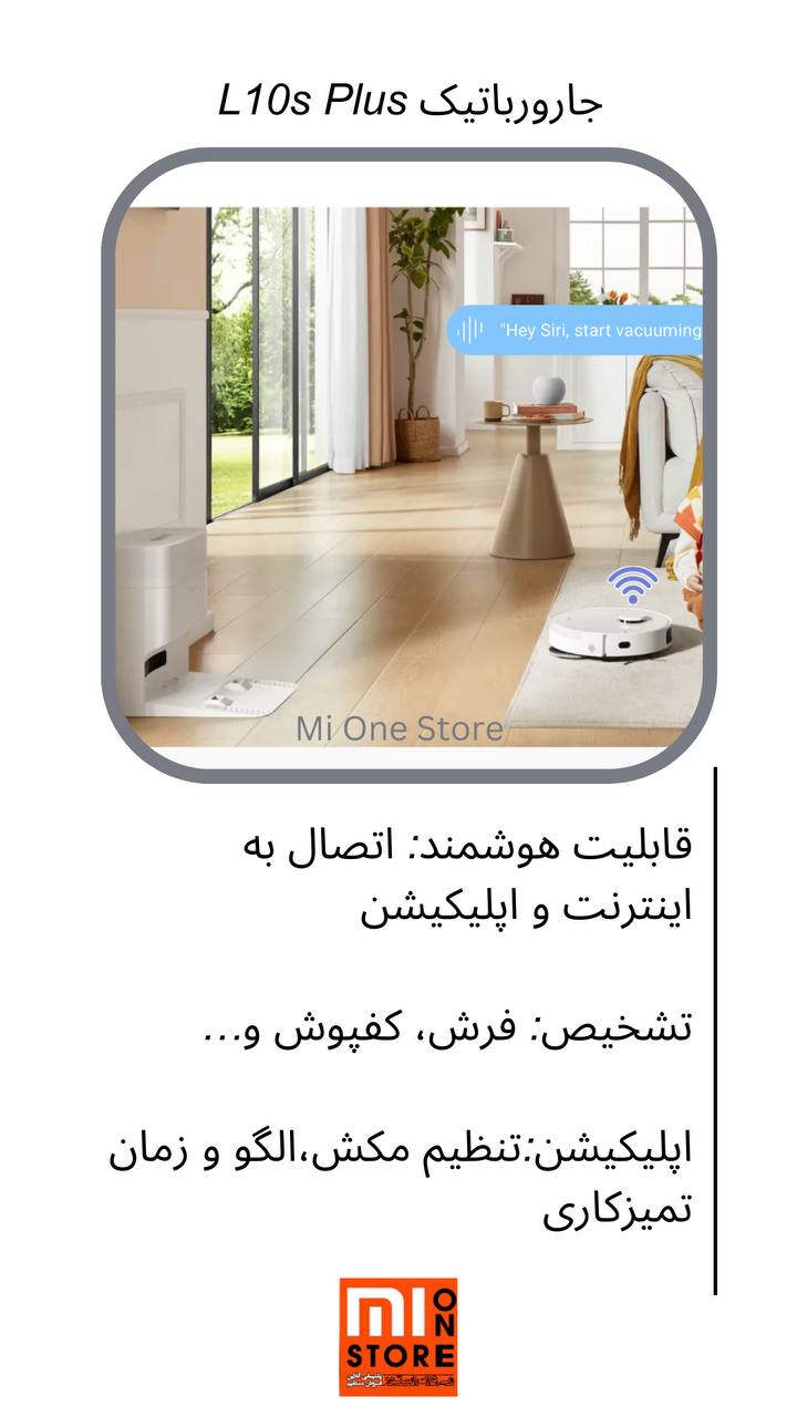 - L10 s Plus دارای کنترل برنامه انعطاف پذیر می باشد بدین ترتیب که از تمیز کردن شخصی با قابلیت تنظیم حالت تمیز کردن، قدرت مکش، الگوی تمیز کردن و زمان تمیز کردن، همه قابل کنترل و طبق نظر شما قابل برنامه ریزی می باشد.