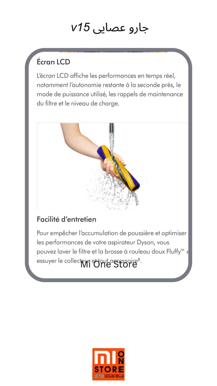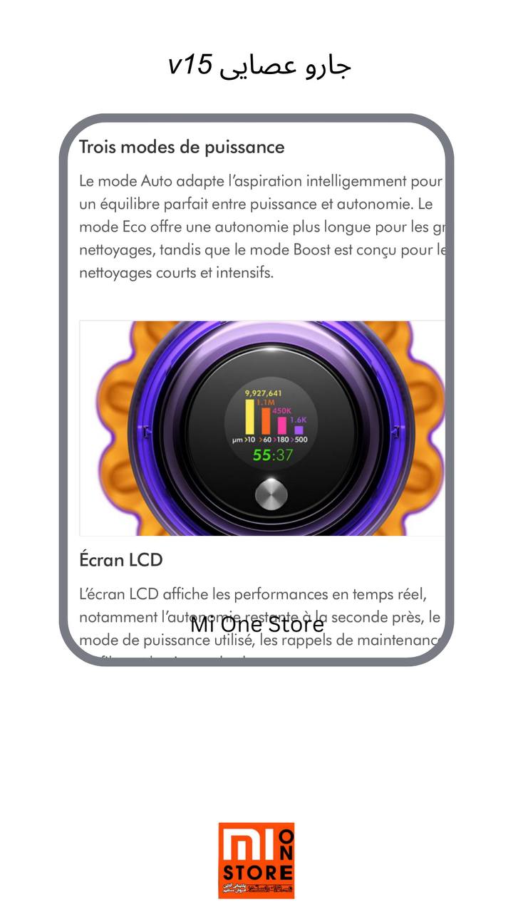 جارو عصایی V15 دارای صفحه نمایش ال سی دی است این صفحه نمایش LCD عملکرد بلادرنگ را نشان می دهد، از جمله: