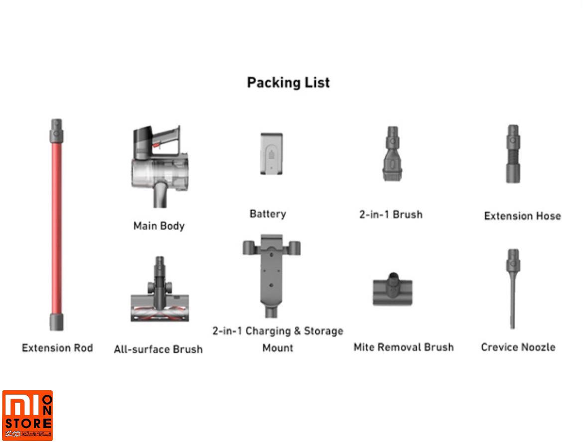 - جارو عصایی شیائومی درما دارای مکش قوی 150 AW و موتور پرسرعت Dreame است که در 125000 دور در دقیقه می چرخد که به ارائه عملکرد تمیز کردن موثر و رضایت بخشی کمک می کند.