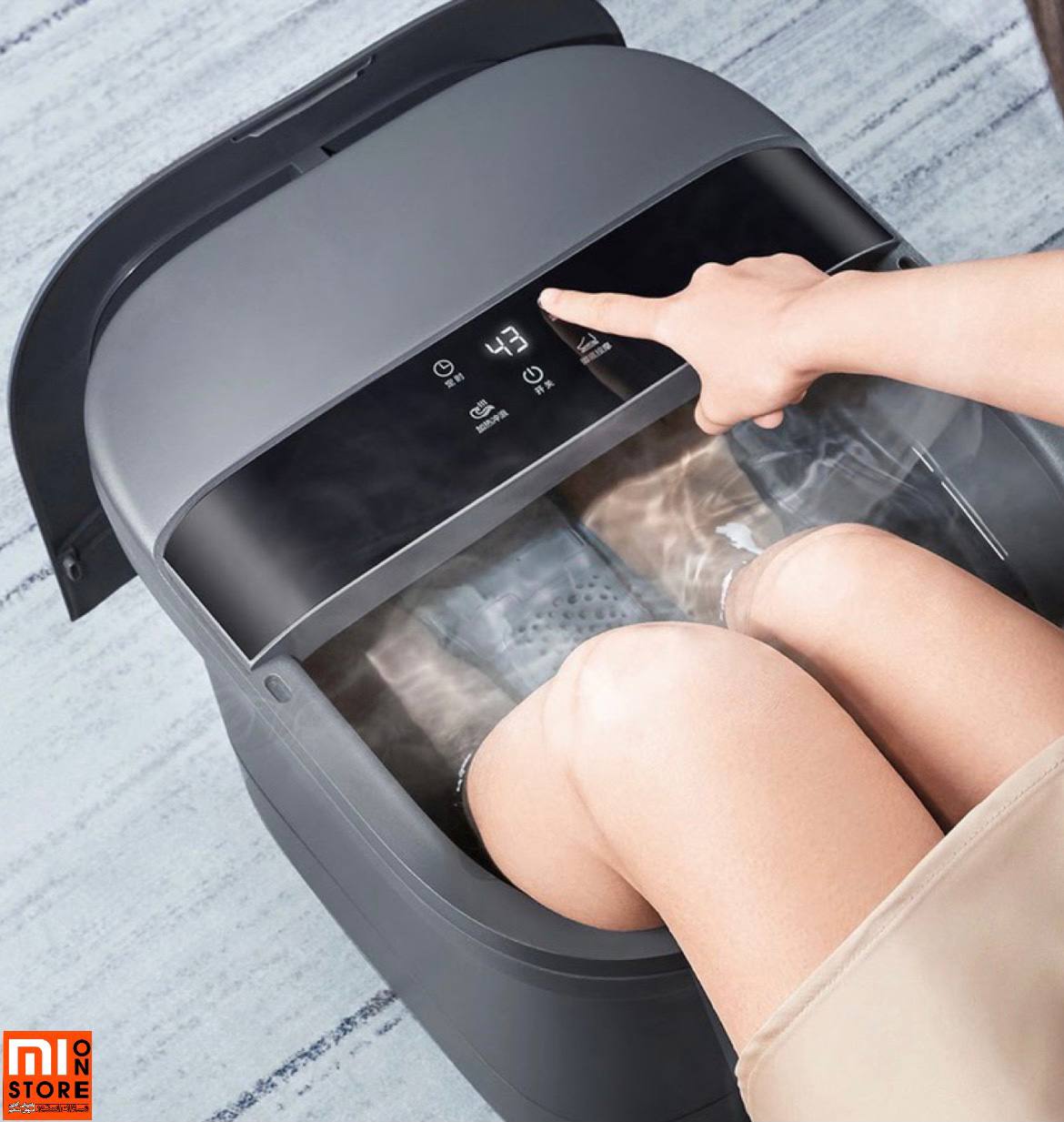 - دستگاه شستشو و ماساژور هوشمند پا از یک پنل لمسی ضدآب با نمایشگر دیجیتال تشکیل شده است که شما به کمک آن میتوانید گرمای آب دستگاه را تنظیم نمایید بین 35 تا 48 درجه دمای مناسبی است.
