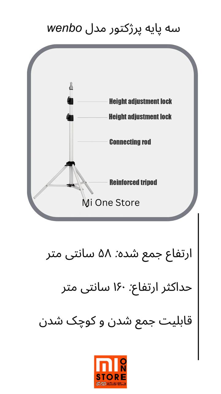 • ارتفاع جمع‌شده این پایه پروژکتور حدود ۵۸ سانتی‌متر می باشد.