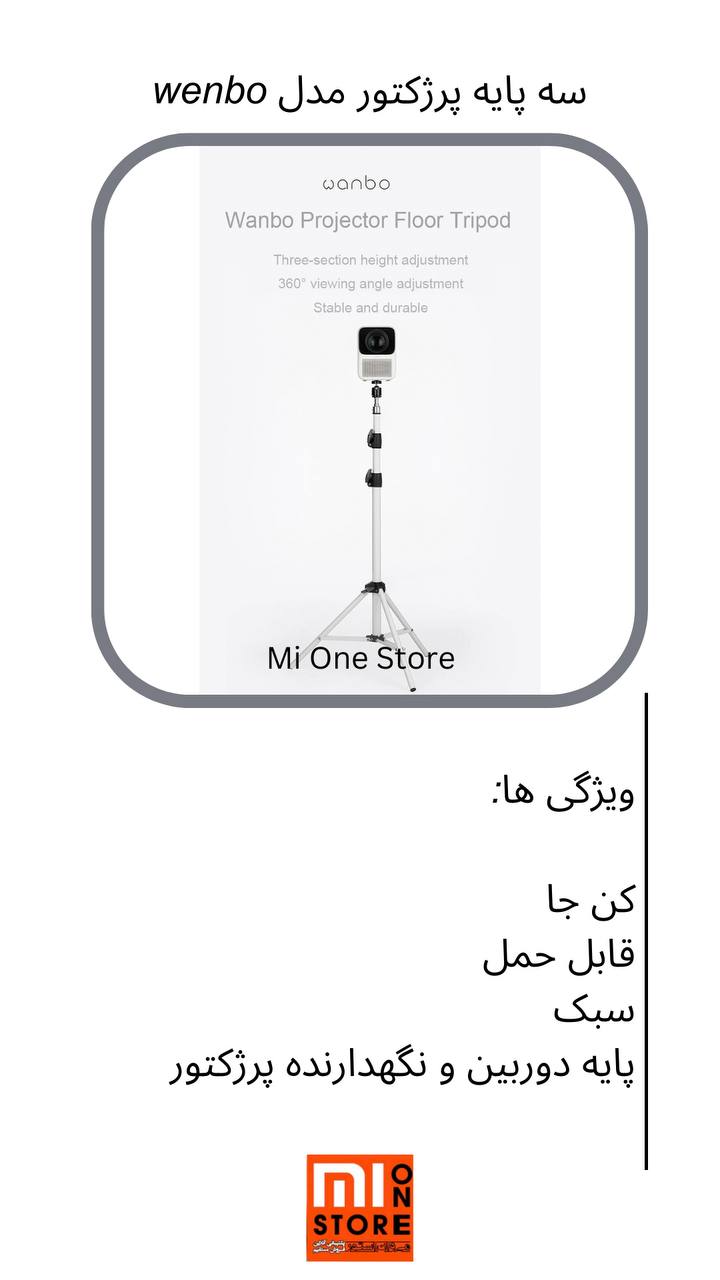 سه پایه پروژکتور مدل Wanbo برای بیشتر ویدئوپروژکتور‌های کوچک، قابل استفاده است. ضخامت پایه ها بیشتر شده و به شما اجازه می دهد تا با اطمینان بیشتری از آن استفاده کنید. سه پایه پروژکتور Wanbo به واسطه ی قابلیت جابجایی، چرخش و تنظیم آسان و ارتفاع مناسب شما به راحتی می توانید به تماشای فیلم های مورد علاقه تان در اتاق خواب، پذیرایی و هر مکان دیگری بپردازید. Xiaomi video projector support Tripods Wanbo دارای کیفیت عالی است که قابلیت تنظیم ارتفاع دارد و شما می توانید 360 درجه زاویه را به دلخواه تان تغییر دهید. ما استفاده از اینسه پایه را به شما پیشنهاد می کنیم.
