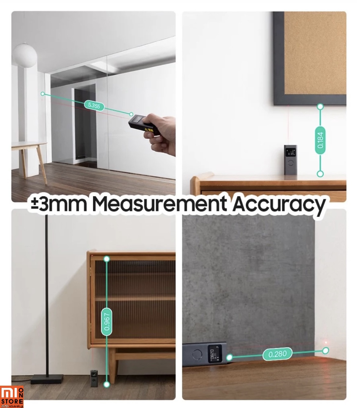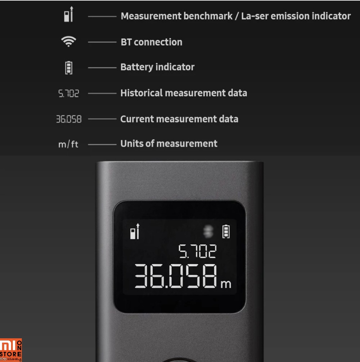 - متر لیزری شیائومی مدل MJJGCJYD001QWبا حداکثر برد اندازه گیری حدود 50 متر و با دقت اندازه گیری ±3 میلی متر، (یعنی دقت اندازه گیری ±3 میلی متر احتمال خطا در اندازه گیری وجود دارد که با توجه به برد 50 متری این متر لیزری دیگه نمی توان انتقادی به آن داشت.)