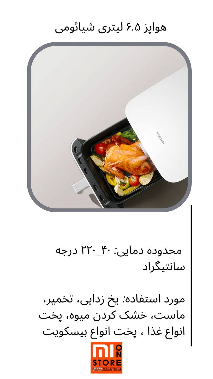 - هواپز ۶.۵ لیتری شیائومی با داشتن ویژگی چربی زدایی با دمای بالا شما می توانید از طعم های سالم، کم چرب و معتبر لذت ببرید.