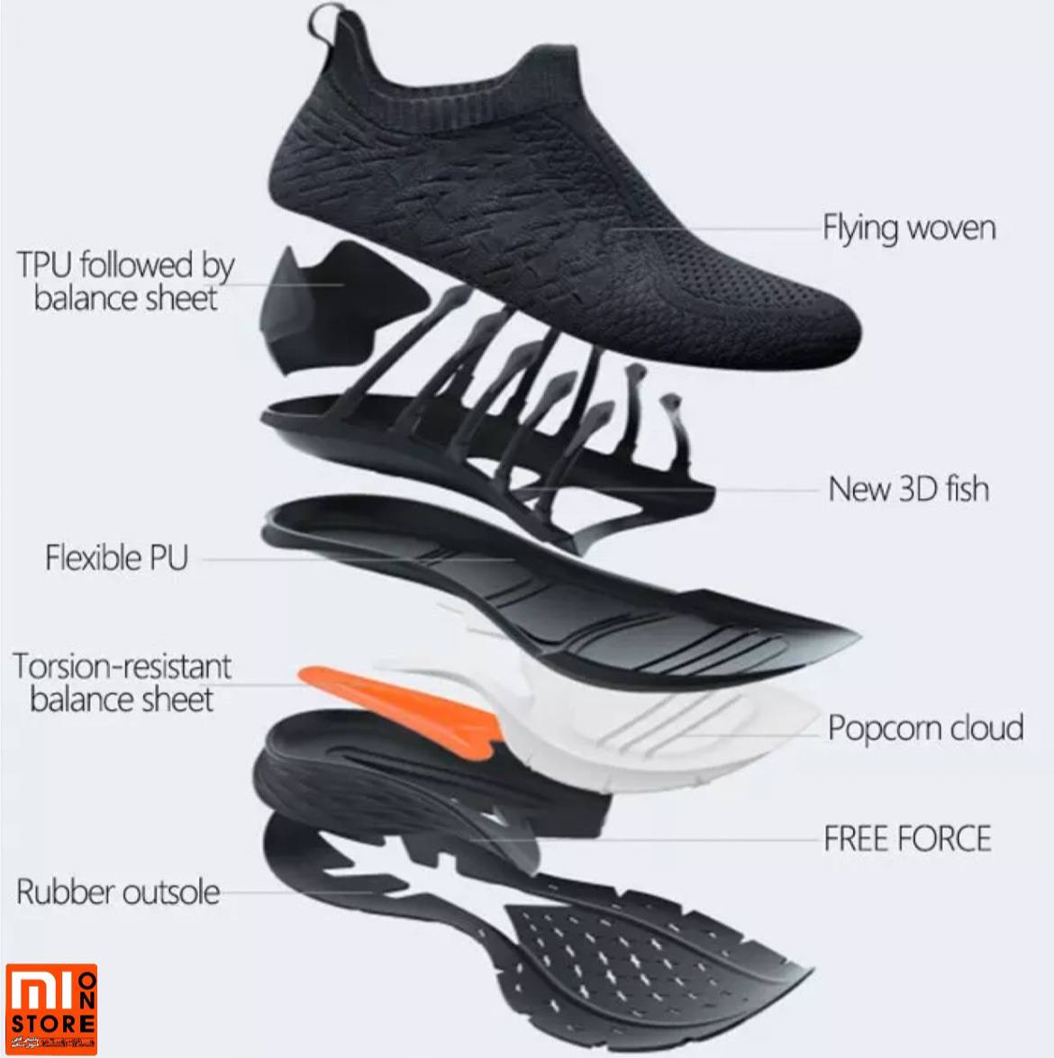 - کفش ورزشی شیائومی Mijia Sneakers 3 دارای ساختار پویا و ارتجاعی است که دارای فرآیند قالب گیری یکپارچه Uni-Moulding 2.0 می باشد، این کفش با اناتومی پا کاملا مطابقت دارد.