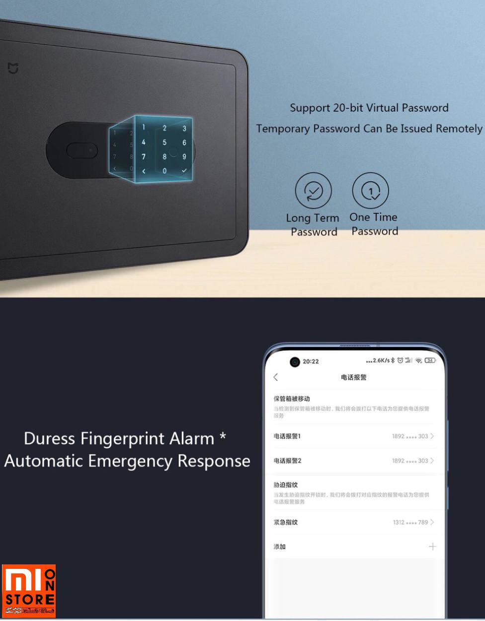 گاوصندوق هوشمند شیائومی Xiaomi Mijia Smart Safe Deposit Box BGX-5/X1-3001 دارای 6 روش مختلف برای باز کردن قفل صندوق می باشد: