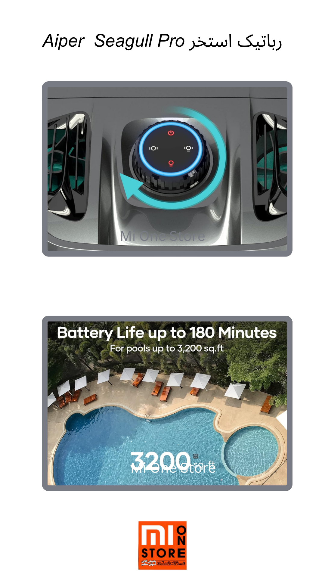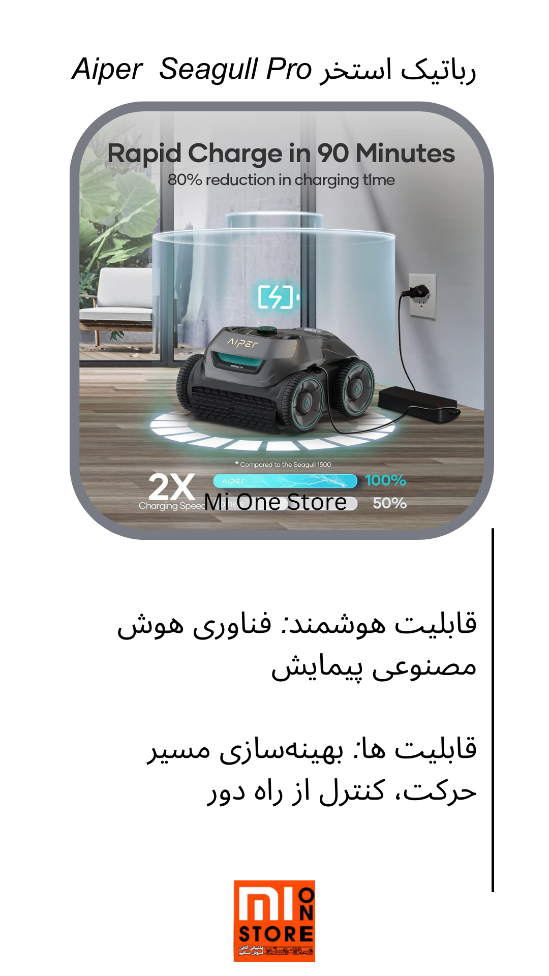 - جاروی رباتیک استخر Aiper مدل Seagull Proدارای باتری 9000 میلیآمپر ساعتی است که می تواند کارکرد 3 ساعت و شارژ کامل در 90 دقیقه داشته باشد.
