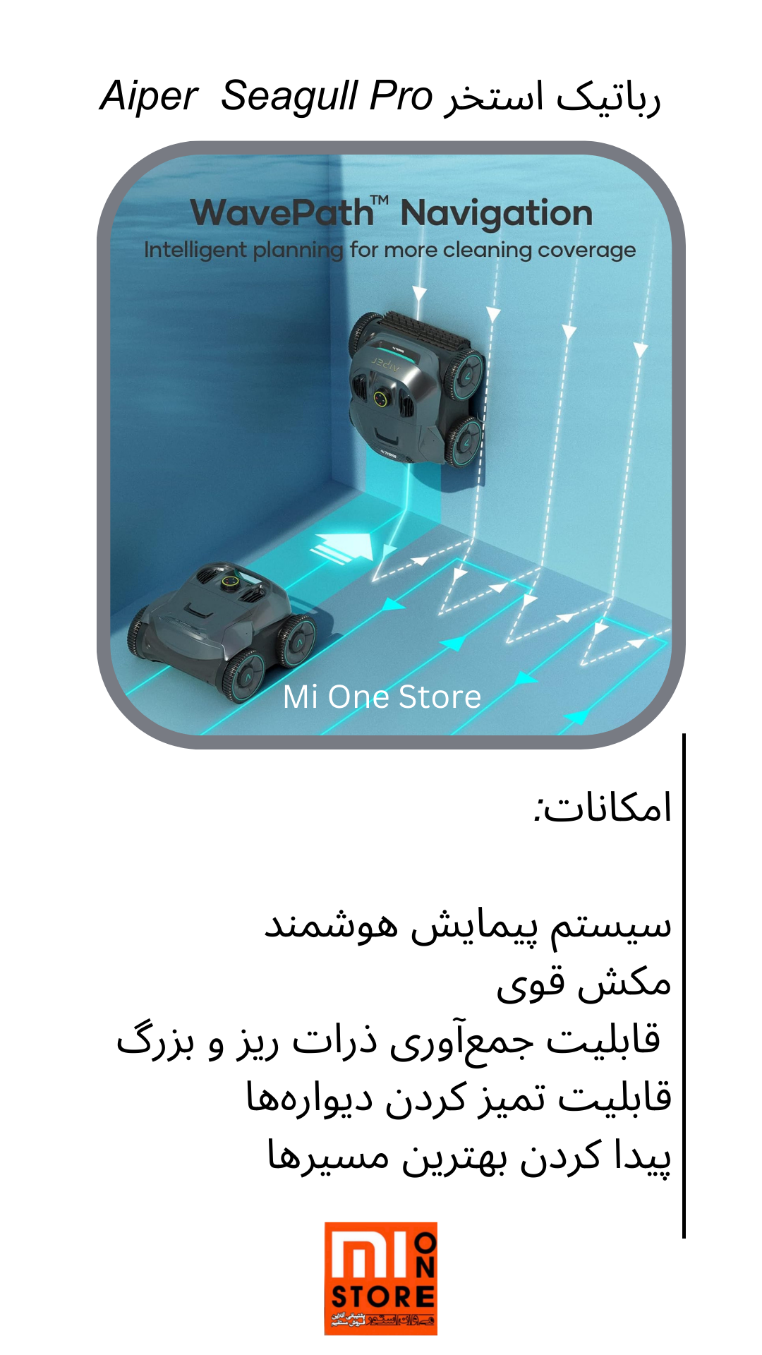 - یکی از جذابترین قابلیتهای این Aiper Seagull Pro Cordless Robotic Pool Cleaner، فناوری هوش مصنوعی پیمایش است. این فناوری به ربات کمک میکند تا مسیر تمیزکاری خود را بهینهسازی کند و با استفاده از حسگرهای پیشرفته، از نقاط تمیزشده دوباره عبور نکند.