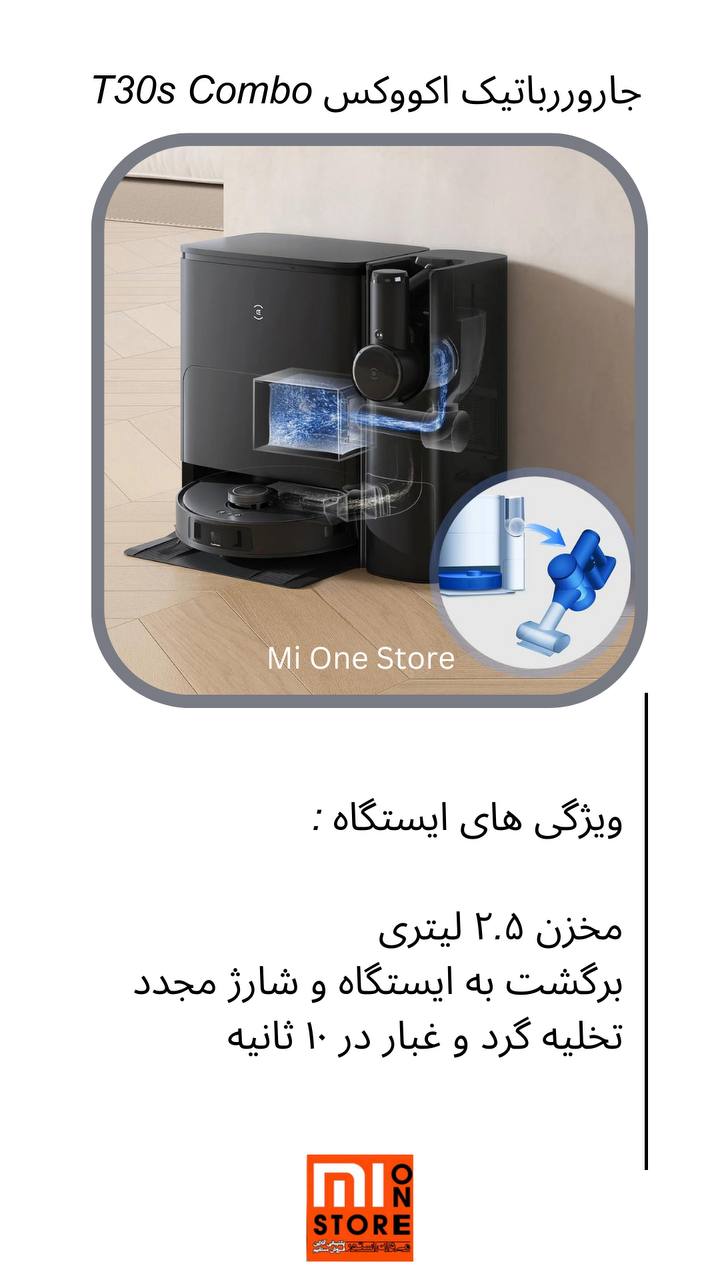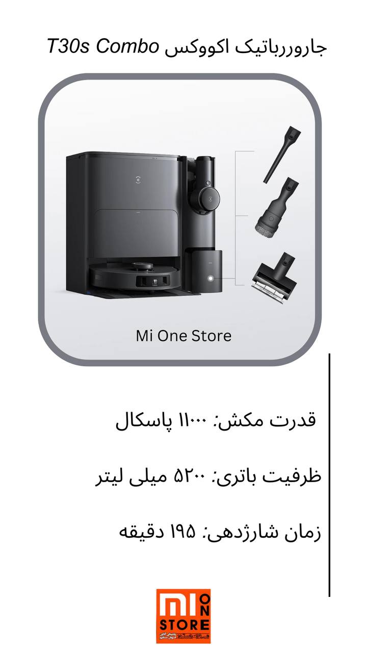 - T30S COMBO با سیستم فیلتراسیون چهار مرحلهای پیشرفته، مجموعه Brush COMBO همهکاره، طراحی سبکوزن و مکش تقویت خودکار هوشمند، این ربات تجربهای کامل و کارآمد از تمیز کردن چند سطح ارائه میدهد.