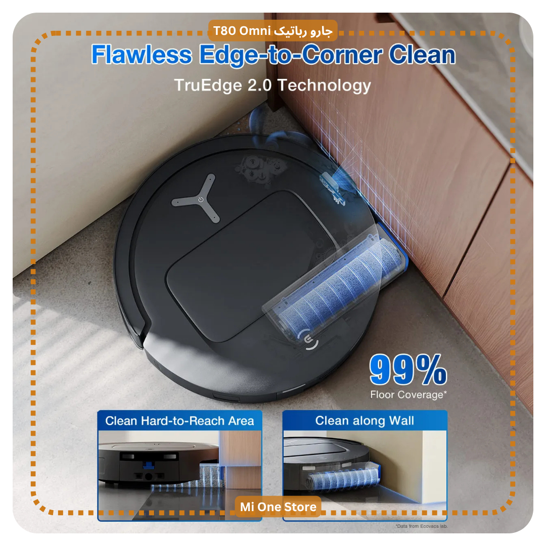 جارو رباتیک T80 Omni دارای الگوریتم پویا و سنسور سهبعدی میباشد. بدین ترتیب که فناوری TruEdge 2.0 با ترکیب الگوریتم پیشرفته و سنسور سهبعدی، امکان امتداد پویا تیغلتکی را فراهم میکند تا لبهها و گوشهها نیز بدون باقیماندن کثیفی، تمیز شوند. T80 Omni دارای برس کناری انعطافپذیر است و بهگونهای طراحی شده که به نقاط کور و گوشهها نفوذ کرده و پوشش تمیزکاری دستگاه را به ۹۹٪ میرساند.