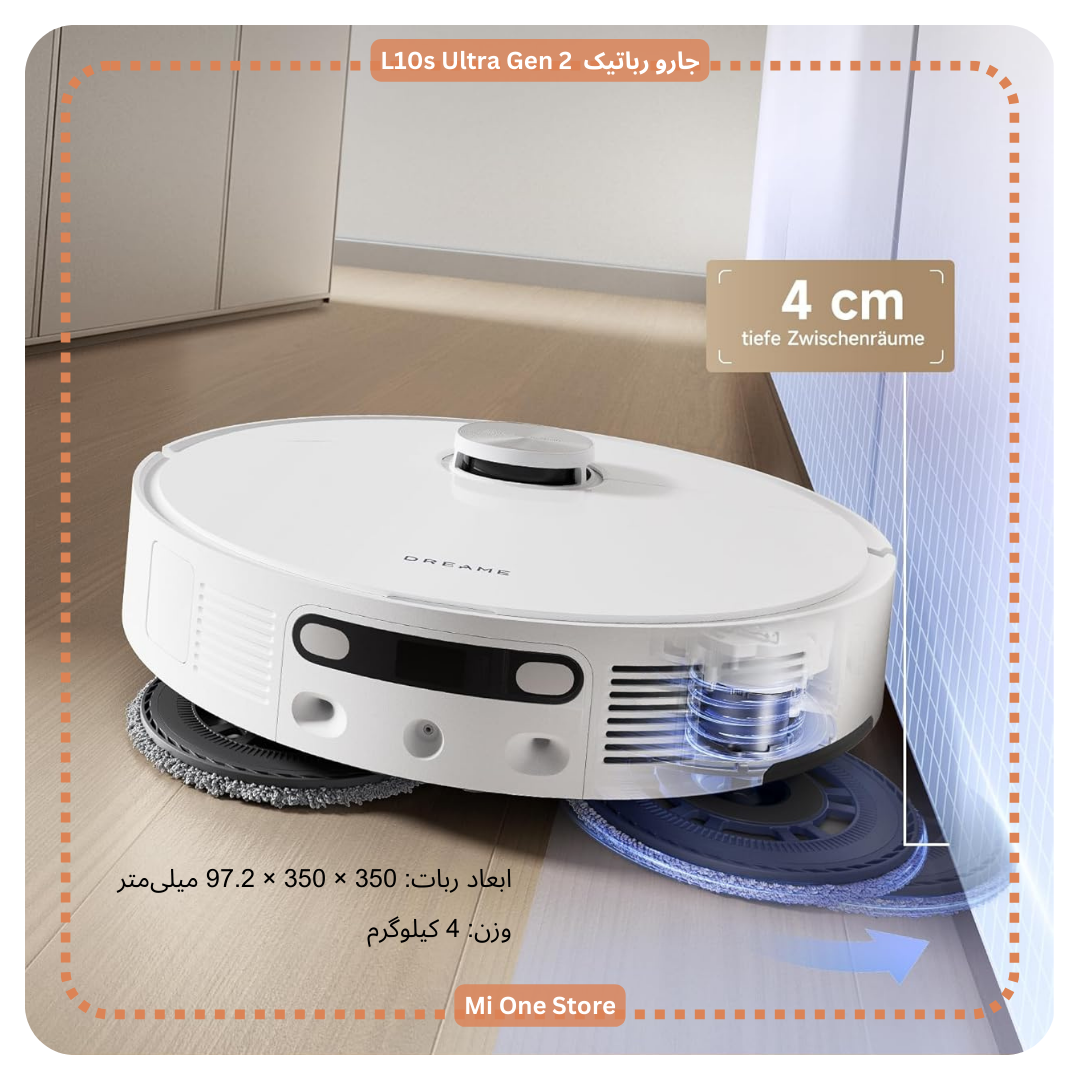 یکی از ویژگیهای برجسته جارو رباتیک L10s Ultra Gen 2، فناوری MopExtend RoboSwing می باشد که امکان تمیز کردن عمیق لبهها و گوشهها را فراهم میکند. این فناوری با افزایش طول پدهای مرطوب کننده، به دستگاه اجازه میدهد تا به راحتی زیر مبلمان کم ارتفاع و فضاهای تنگ تا عمق 4 سانتیمتر نفوذ کرده و ذرات پنهان را تمیز کند.