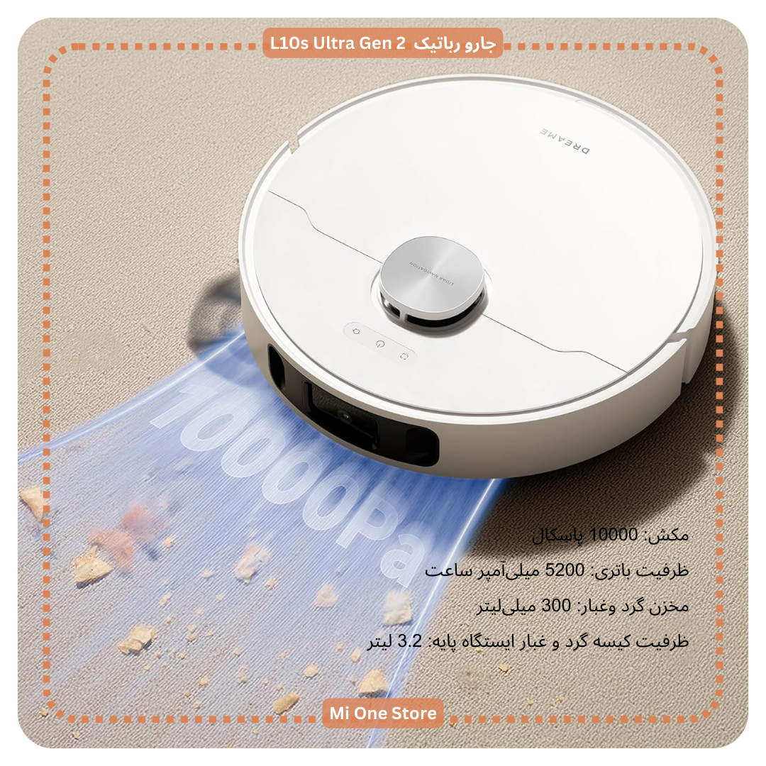 جارو رباتیک دریم مدل L10s Ultra Gen 2 با بهرهگیری از سیستم مکش Vormax می تواند قدرت مکشی معادل 10,000 پاسکال را فراهم کند که به لطف موتور پرقدرت آن، بهراحتی گرد و غبار، موهای حیوانات خانگی و ذرات ریز را از روی انواع سطوح سخت جمعآوری مینماید.