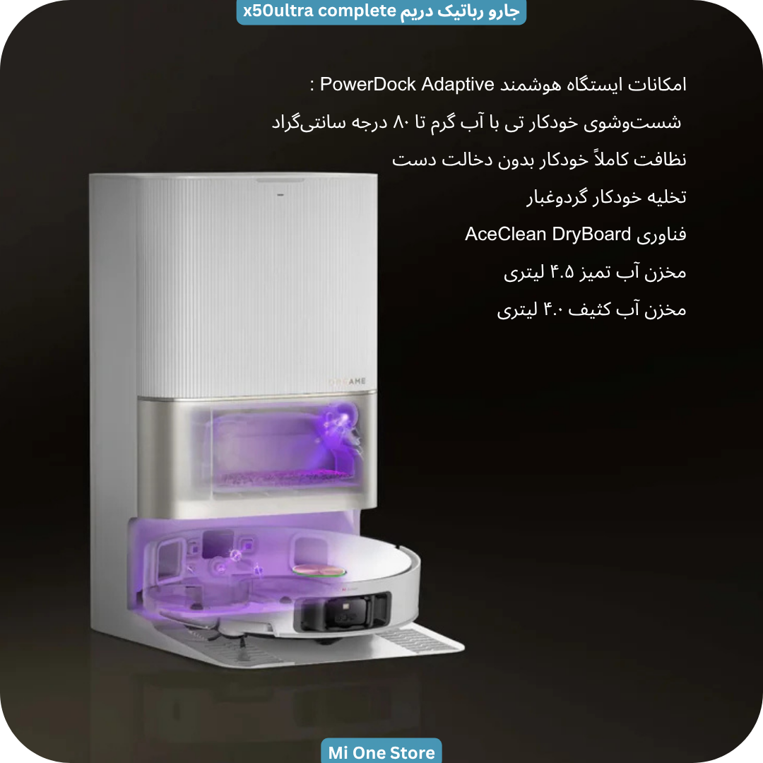 جارو رباتیک X50 Ultra Complete دارای ایستگاه PowerDock هوشمند است. در این ربات نظافت کاملاً خودکار بدون دخالت دست با ایستگاه هوشمند PowerDock Adaptive انجام میشود، دیگر نیازی نیست حتی یکبار دست به جارو بزنید. این ایستگاه نهتنها تخلیه خودکار گردوغبار را انجام میدهد، بلکه قابلیت شستوشوی خودکار تی با آب گرم تا ۸۰ درجه سانتیگراد را نیز دارد.