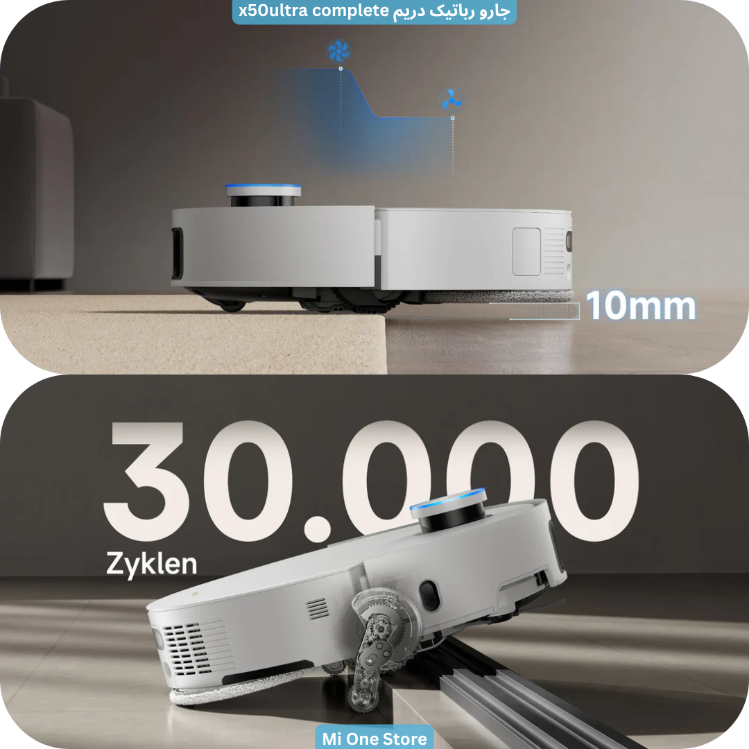 عبور از موانع با فناوری پیشرفته ProLeap یکی از نقاط تمایز X50 Ultra Complete، سیستم نوآورانهی ProLeap است. این فناوری به ربات اجازه میدهد از موانعی تا ارتفاع ۶ سانتیمتر عبور کند. برخلاف بسیاری از جاروهای رباتیک معمولی که در عبور از ریلهای در یا فرشهای ضخیم مشکل دارند، Dreame X50 بهراحتی و بدون لرزش از آنها عبور میکند.