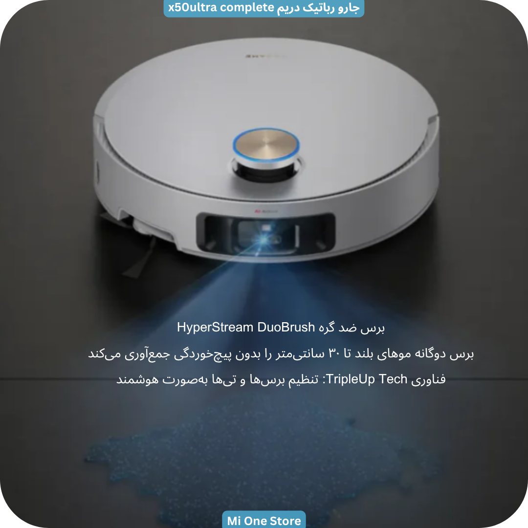 جارو رباتیک X50 Ultra Complete دارای برس ضد گره HyperStream DuoBrush است، خداحافظی با موهای پیچخورده یکی از معضلات رایج در جاروهای رباتیک، گیرکردن مو در برس میباشد. Dreame این مشکل را با فناوری اختصاصی HyperStream DuoBrush حل کرده است.