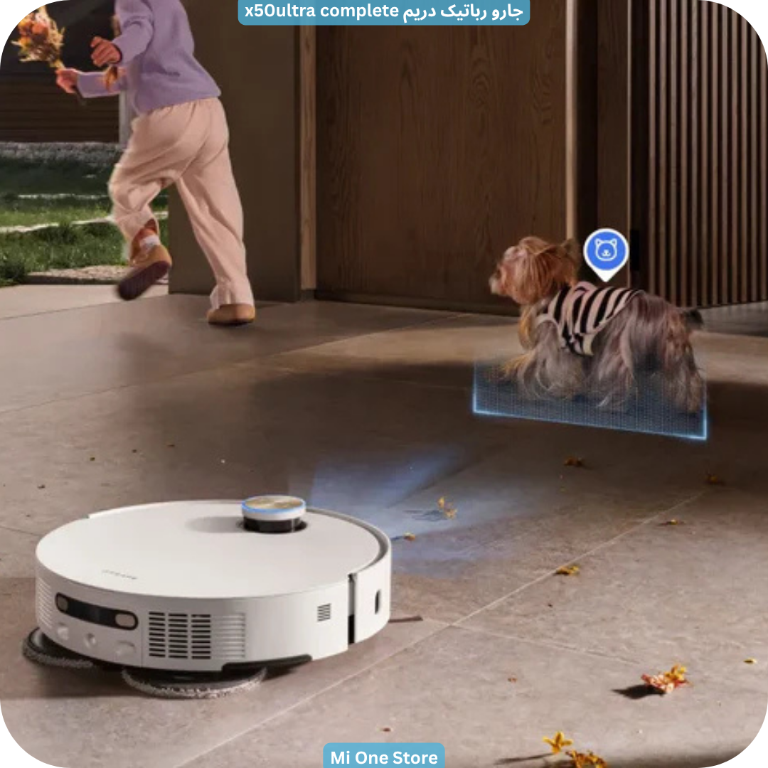 این جارو رباتیک مراقبت از حیوانات خانگی با هوش مصنوعی انجام میدهد. Dreame X50 Ultra Complete مجهز به دوربین AI با نور ساختاریافته سهبعدی است که تا ۲۰۰ نوع شیء مختلف را شناسایی میکند. این دوربین حتی میتواند حیوانات خانگی شما را تشخیص داده و از برخورد با آنها جلوگیری کند.