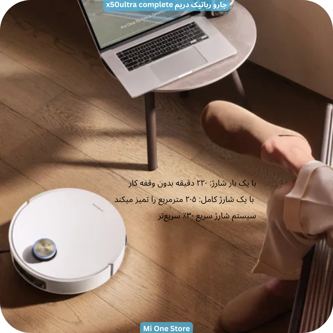 X50 Ultra Complete دارای عمر باتری طولانی و شارژ سریعتر با باتری قدرتمند ۶۴۰۰ میلیآمپرساعتی است، این جارو تا ۲۲۰ دقیقه بدون وقفه کار میکند و میتواند تا ۲۰۵ مترمربع را تنها با یک شارژ کامل تمیز کند.