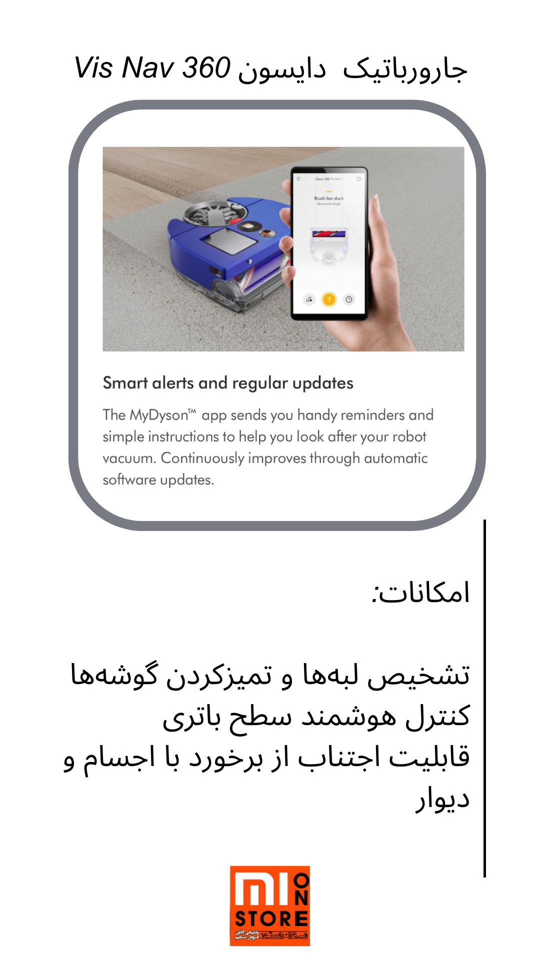 - جارو رباتیک دایسون مدل 360 Vis Nav دارای دید ناوبری بصری 360 درجه است که می تواند به یاد آورد که کجا بوده است و می بیند که کجا باید تمیز شود این ربات جز قدرتمندترین ربات است.