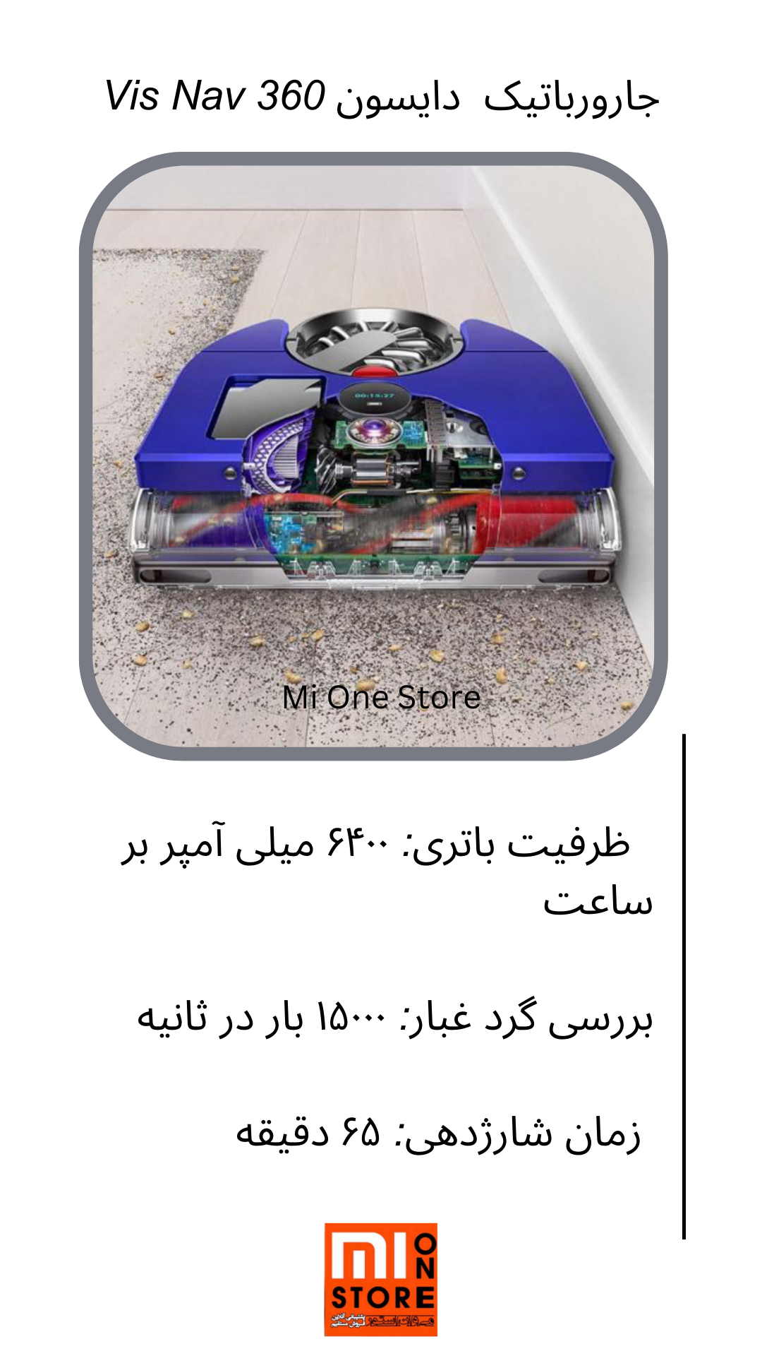 - این جارو رباتیک 360 Vis Nav می تواند تا 65 دقیقه با یکبار شارژ، خانه یا محل کار شما را تمیز نماید.