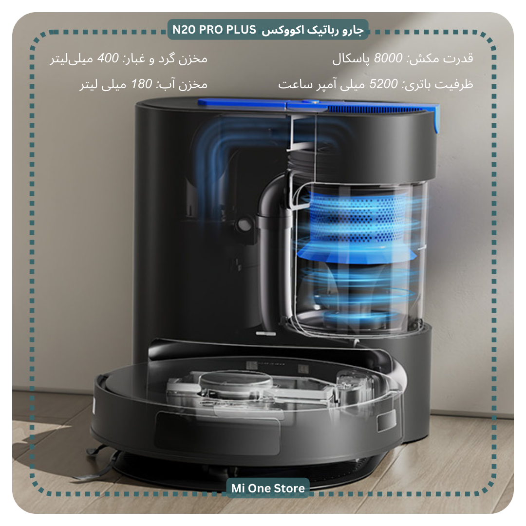 • جارو رباتیک اکووکس مدل  ECOVACS N20 PRO PLUS دارای قدرت مکش قدرتمند 8000 پاسکال می باشد.