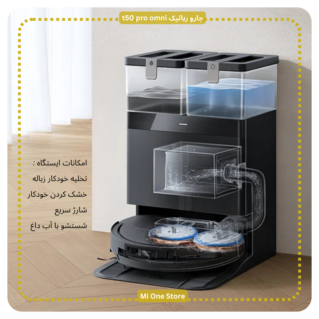 ایستگاه تخلیه خودکار و شست وشو جارو رباتیک t50 pro omni