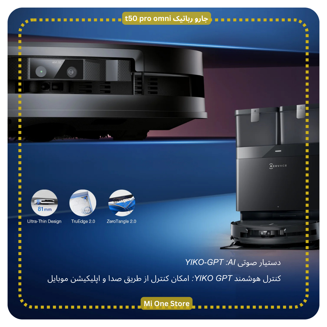 جارو رباتیک اکووکس مدل t50 pro omni دارای فناوری OMNI-Approach AIVI 3D 3.0 می باشد که توسط مدل Vision-Language (VLM) طراحی شده است، استفاده می کند. این فناوری پیشرفته به ربات اجازه می دهد تا تمام موانع را در زمان واقعی شناسایی کند و از خطوط آنها به عنوان مرز برای تمیز کردن لبه ها استفاده نماید.