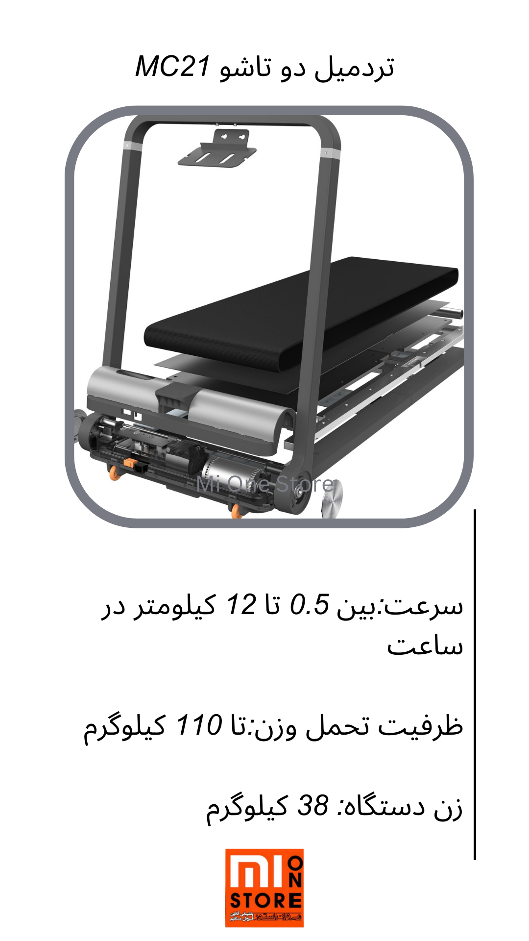 - تردمیل دو تاشو MC21 دارای سرعتی بین 0.5 تا 12 کیلومتر در ساعت است که می توانید شما سرعتی برای پیادهروی و دویدن تنظیم نماید.