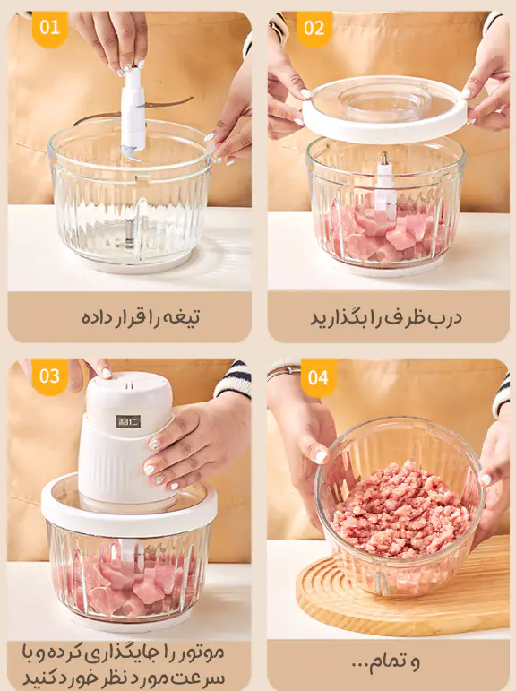 قلب تپنده این غذاساز، موتور قدرتمند با توان ۳۰۰ وات است که با کمک تیغههای ۴ پره فولادی ضدزنگ، هر نوع ماده غذایی از جمله گوشت، سبزیجات، مغزها و حتی یخ را در زمانی کوتاه خرد و له میکند. با وجود این قدرت بالا، دستگاه عملکردی کمصدا و روان دارد که تجربهای دلپذیر در آشپزی فراهم میسازد.