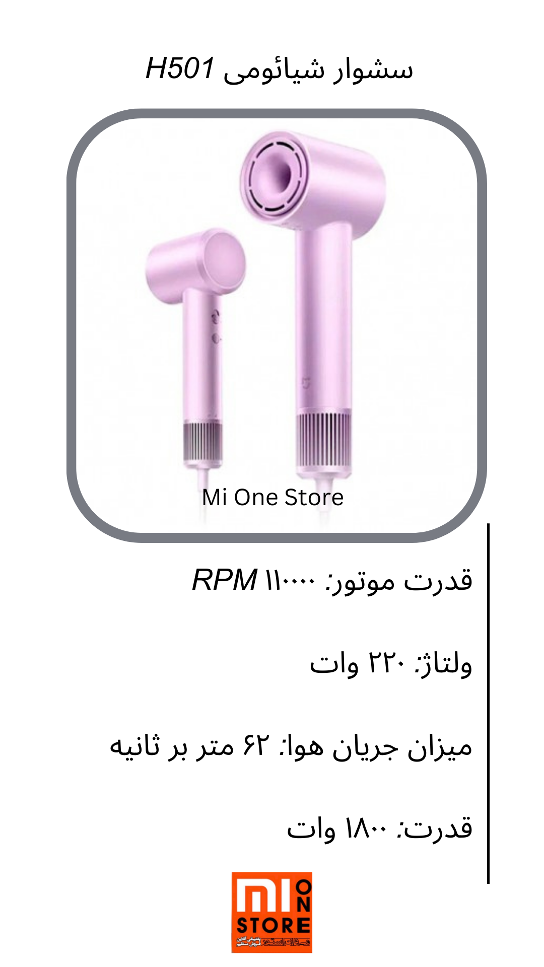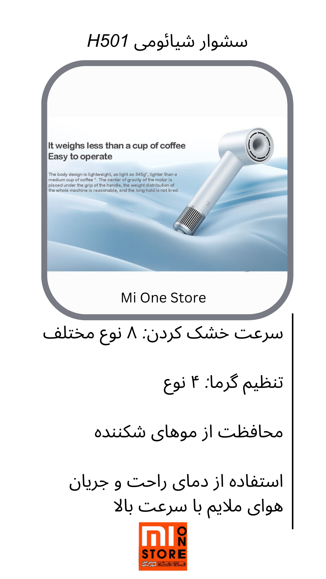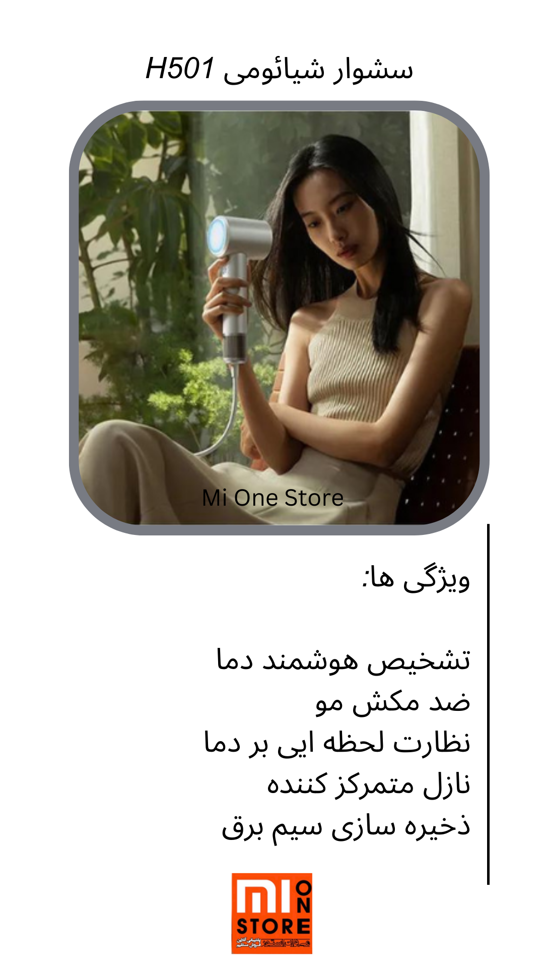 - Mijia H501 High Speed Hair Dryer دارای تکنولوژی محافظ حرارتی است برای جلوگیری از حرارت اضافی و آسیب به پوست و موهای شما طراحی شده است.