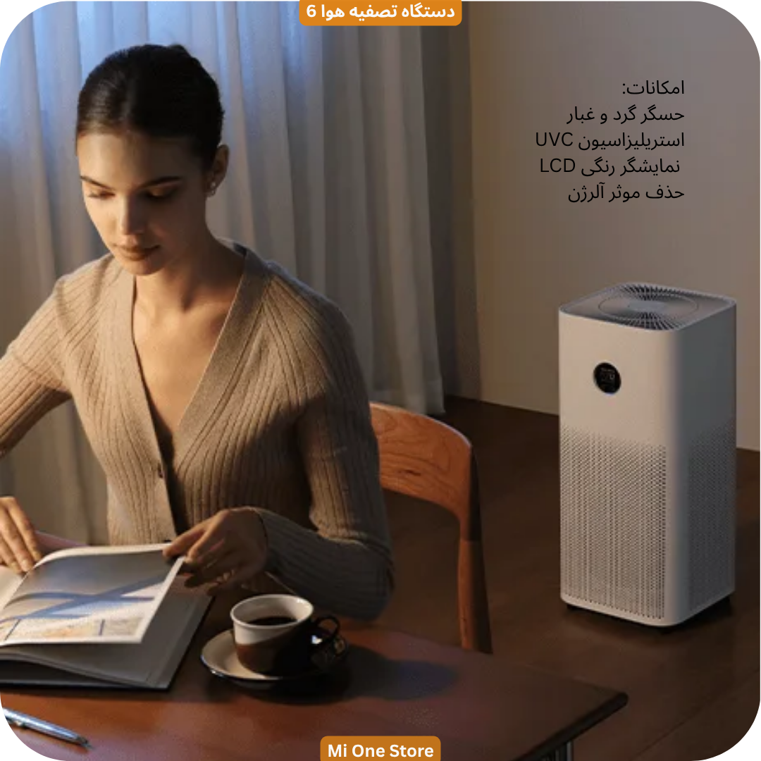 تنفس هوای تازه و پاک را با دستگاه تصفیه هوا شیائومی مدل Xiaomi Mijia Smart Air Purifier 6 تجربه کنید و با تکنولوژی پیشرفته فیلتراسیون، تضمین می‌کند که هوای خانه‌تان پاک و عاری از آلاینده‌های مضر باشد. دستگاه تصفیه هوا 6 دارای طراحی هوشمند و بی‌صدا، حسگر گرد و غبار | استریلیزاسیون UVC | نمایشگر رنگی LCD است. Mijia Smart Air Purifier 6 دارای حسگر جدید PM1 است که می‌تواند حتی کوچکترین آلاینده‌های موجود در هوا را تشخیص دهد. همراه شما برای سلامتی و آرامش خانواده‌تان است. ما استفاده از این دستگاه تصفیه هوشمند را به شما توصیه می‌کنیم.