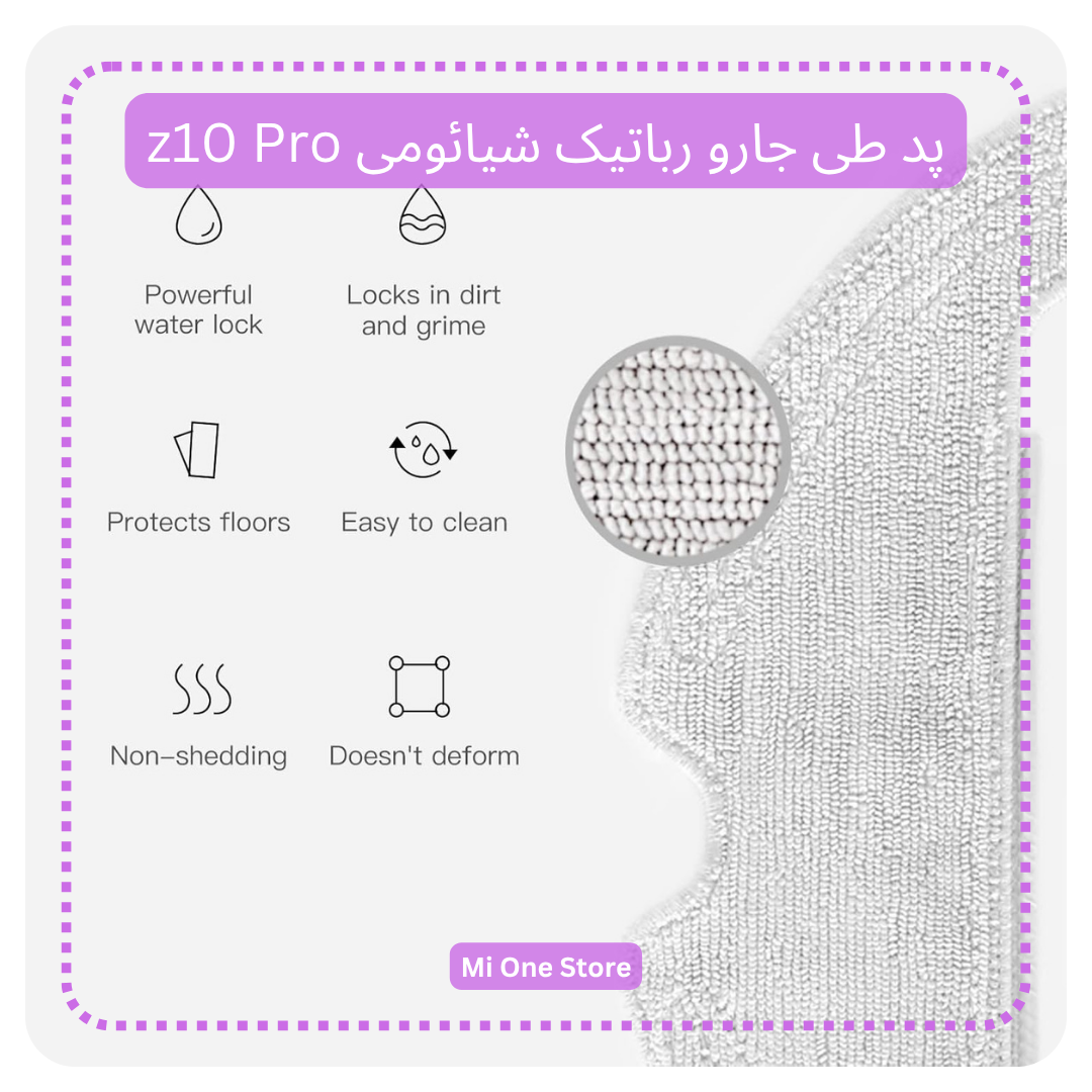 • جنس این پد طی z10 Pro از الیاف میکروفایبر بسیار باکیفیت و نرم ساخته شده که هم قدرت جذب بالایی دارند و هم به کف آسیبی نمی‌زنند.